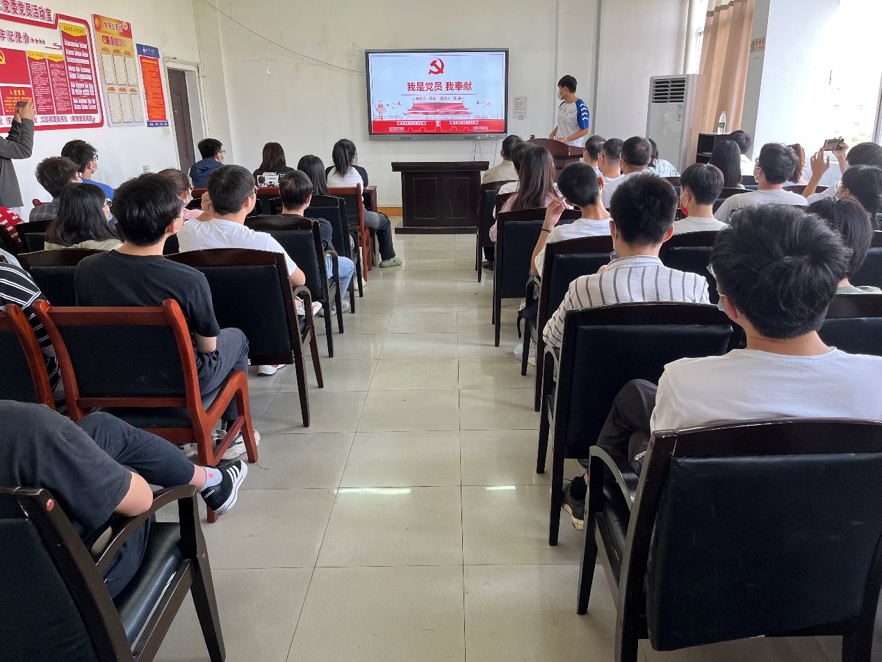 活动第三部分,常睿同志领学“我是党员我奉献”党课精神。提出党员是一个标杆,也是一个标准,更是一个高度。我们应该深刻认识到,在向第二个百年奋斗目标进军的关键时刻,我们青年必须要能担起历史的使命,要将个人理想追求融入党和国家的事业中。选择了做共产党员就意味着选择了奉献,有责任有担当,青春才会闪光。
