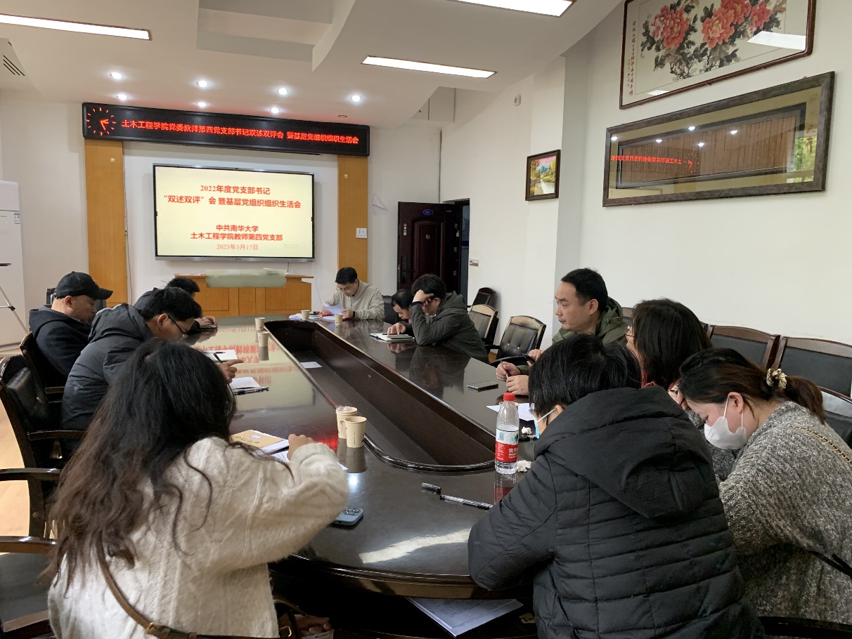 2023年3月17日14:30,beats365教师第四党支部支部书记“双述双评”会暨基层党组织组织生活会在土木楼三楼会议室顺利召开。本次大会由教师第四党支部书记贺其同志主持,支部全体教师党员参加。