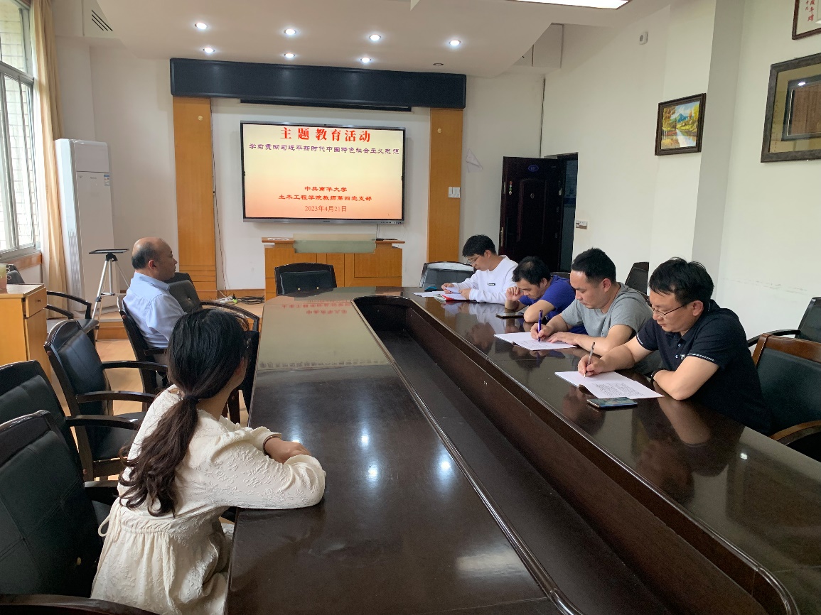 2023年4月21日14:30,beats365教师第四党支部学习贯彻习近平新时代中国特色社会主义思想主题教育动员会在土木楼三楼会议室顺利召开。本次大会由教师第四党支部书记贺其同志主持,支部教师党员参加。