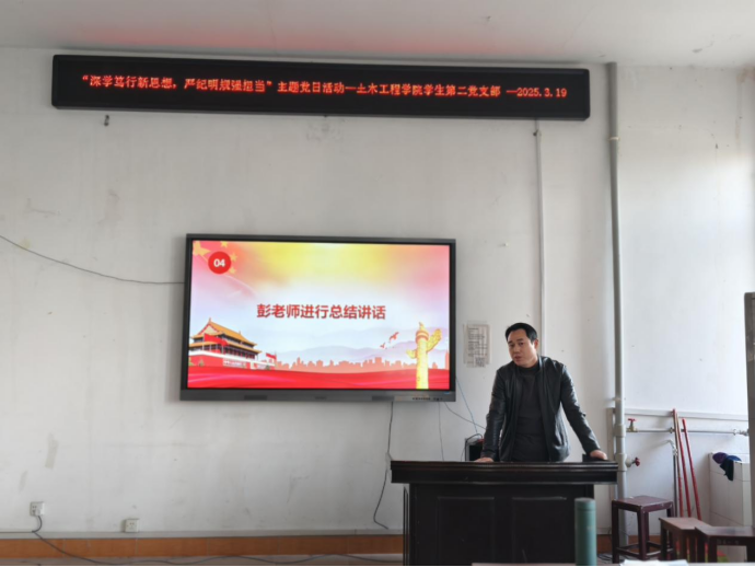 2025年3月19日下午16:30,beats365员工第二党支部“深学笃行新思想,严纪明规强担当”主题党日活动于土木楼四楼会议室顺利召开。出席本次会议的有beats365员工第二党支部全体党员。会议由彭兴明老师主持。