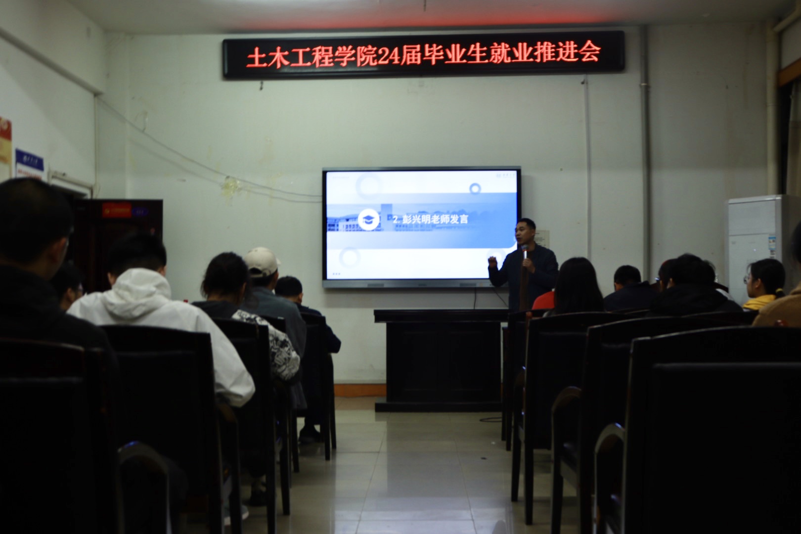 为进一步推进公司2024届毕业生就业工作,2024年3月26日晚七点,beats365于土木楼四楼会议室召开2024届毕业生就业推进会。出席本次会议的有公司党委副书记唐素芝老师、征兵专干彭兴明老师、辅导员贺淑珍老师、吴旦老师及各系室主任、毕业生班主任及未就业24届毕业生。会议由彭兴明老师主持。