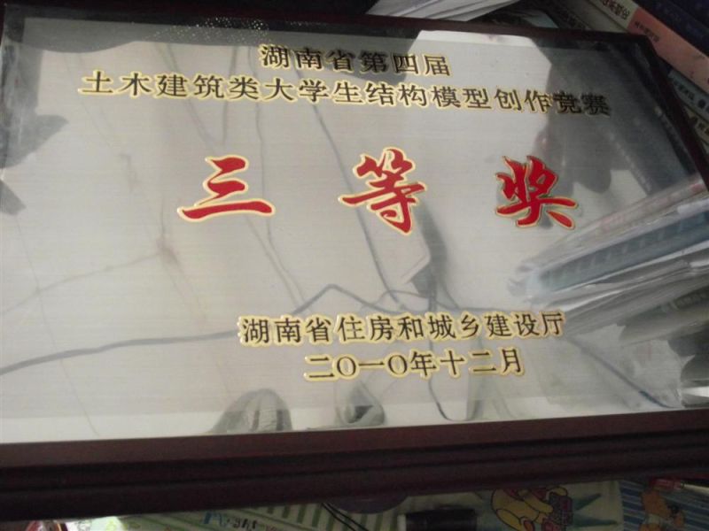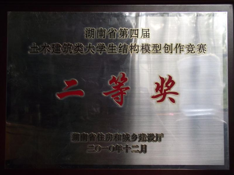 2010年5月:成功举办beats365官方网站第二届结构模型设计大赛暨城市建设公司第四届结构模型设计大赛。此次比赛中88克的纸质桥梁模型承受了46千克的重量达到了523倍荷载比的成绩,又一次刷新了我们的成绩。 2010年12月:湖南省第四届结构模型设计竞赛在中南大学举办,城市建设公司代表beats365官方网站参赛,取得了二等奖和三等奖的好成绩。