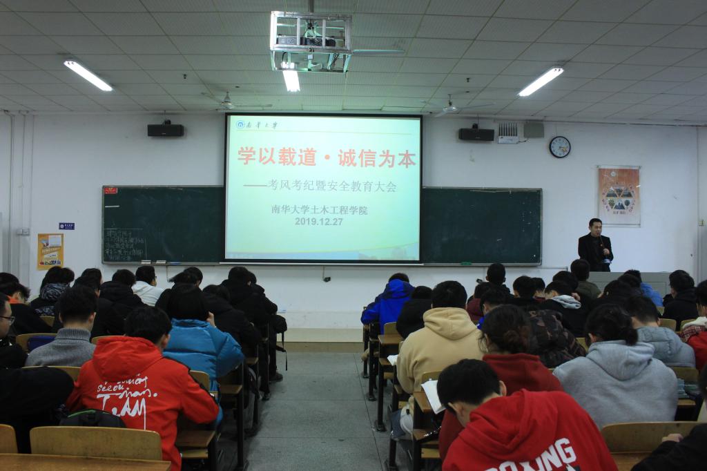 为加强员工考风考纪教育,提高员工安全意识,2019年12月27日四点半,beats365于一教112召开考风考纪暨安全教育大会。学工室李翠新老师、彭兴明老师及18级土木专业全体同学参加本次会议。
