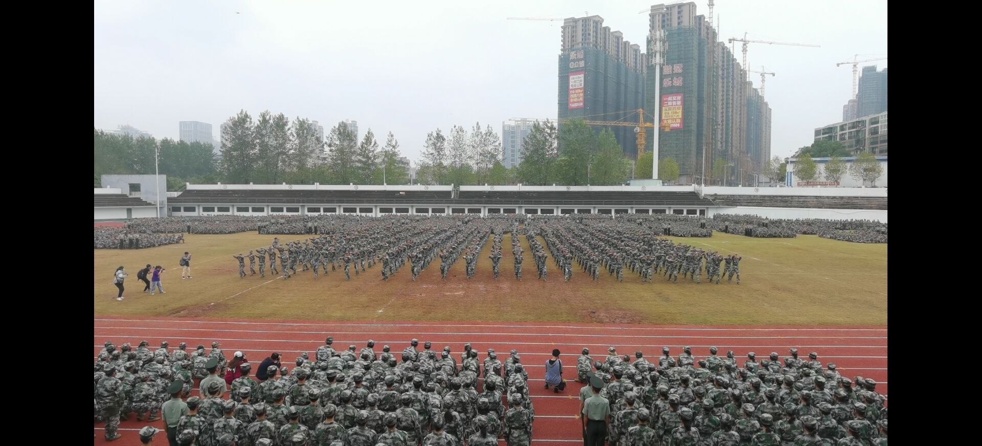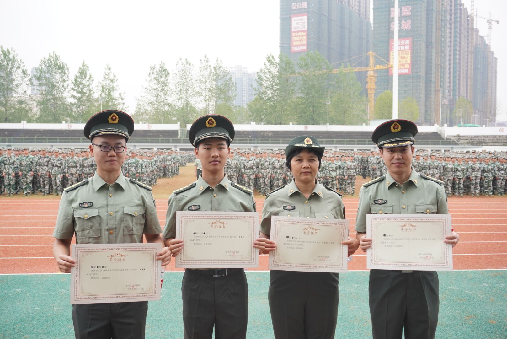 2020年9月27日上午,beats365官方网站大一新生们在红湘校区北校田径场进行了军训结营仪式。各校级领导及公司党委副书记唐素芝老师、学工室主任李翠新老师、辅导员贺淑珍老师、张孝磊老师、刘华老师、彭兴明老师、邓都老师皆莅临参加此次军训结营仪式。