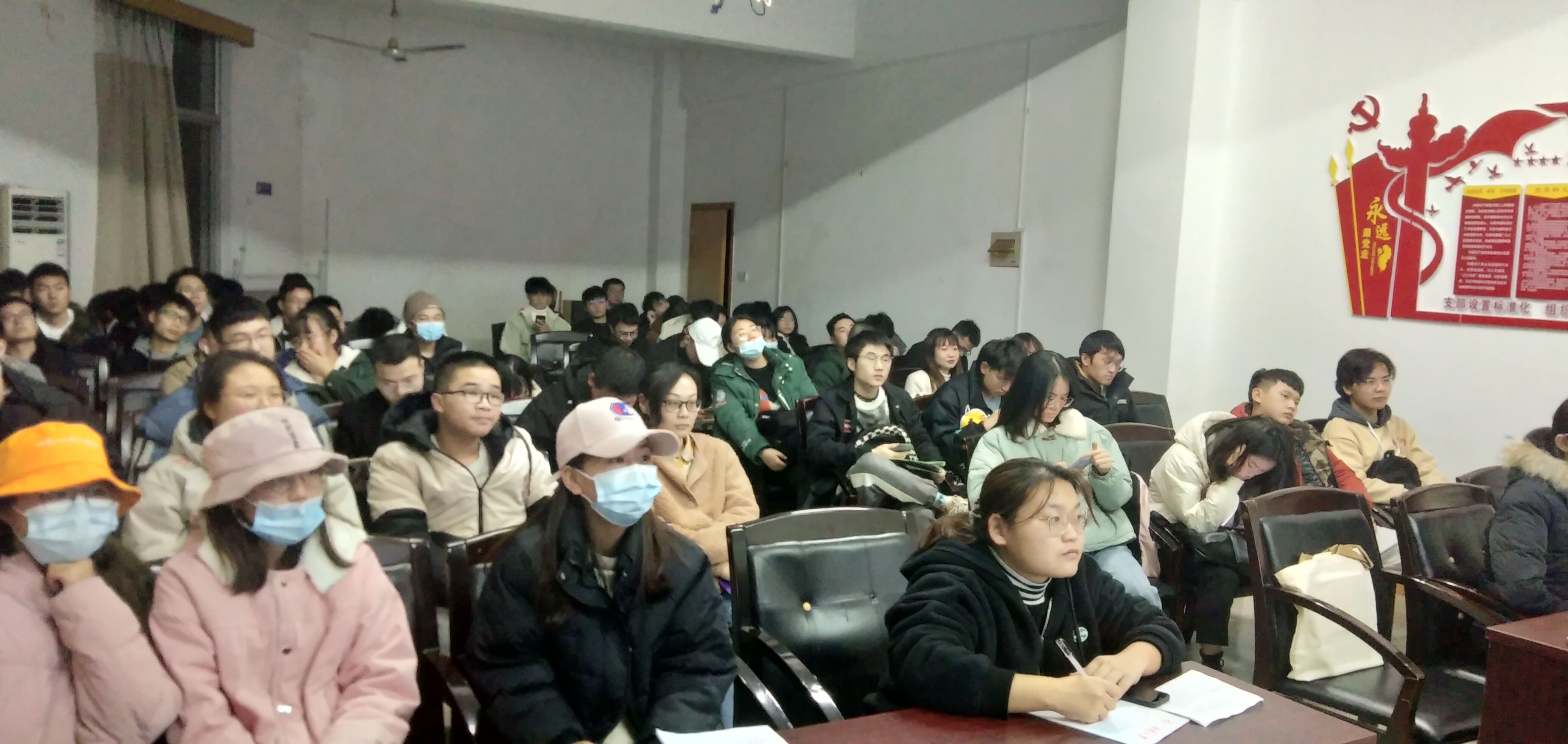 2020年12月23日19点00分,beats365组织全体发展对象培训班学员于土木楼四楼会议室观看党性教育片《榜样4》和《让党旗在防控疫情斗争第一线高高飘扬》系列短片。