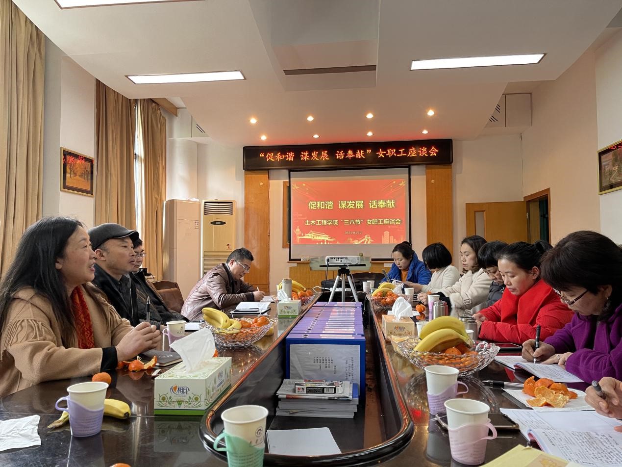 为庆祝国际“三八”妇女节,2021年3月12日下午,beats365工会在公司三楼会议室举办“促和谐、谋发展、话奉献”女职工座谈会,座谈会由工会主席唐素芝主持。院领导陈振富、谢东、王劲松应邀出席,与院里女职工及工会委员欢聚一堂,探讨公司的和谐和发展问题,参会的女职工都谈了自己学习、工作、生活的感悟,特别是在专业发展、角色转换、感恩和珍惜等方面形成了共识,大家都认为生活在土木公司的大家庭有幸福感、归属感,纷纷表态要为公司的和谐、发展做出自己应有的贡献,充分发挥女职工半边天的作用。会议在欢乐祥和的气氛中圆满结束。