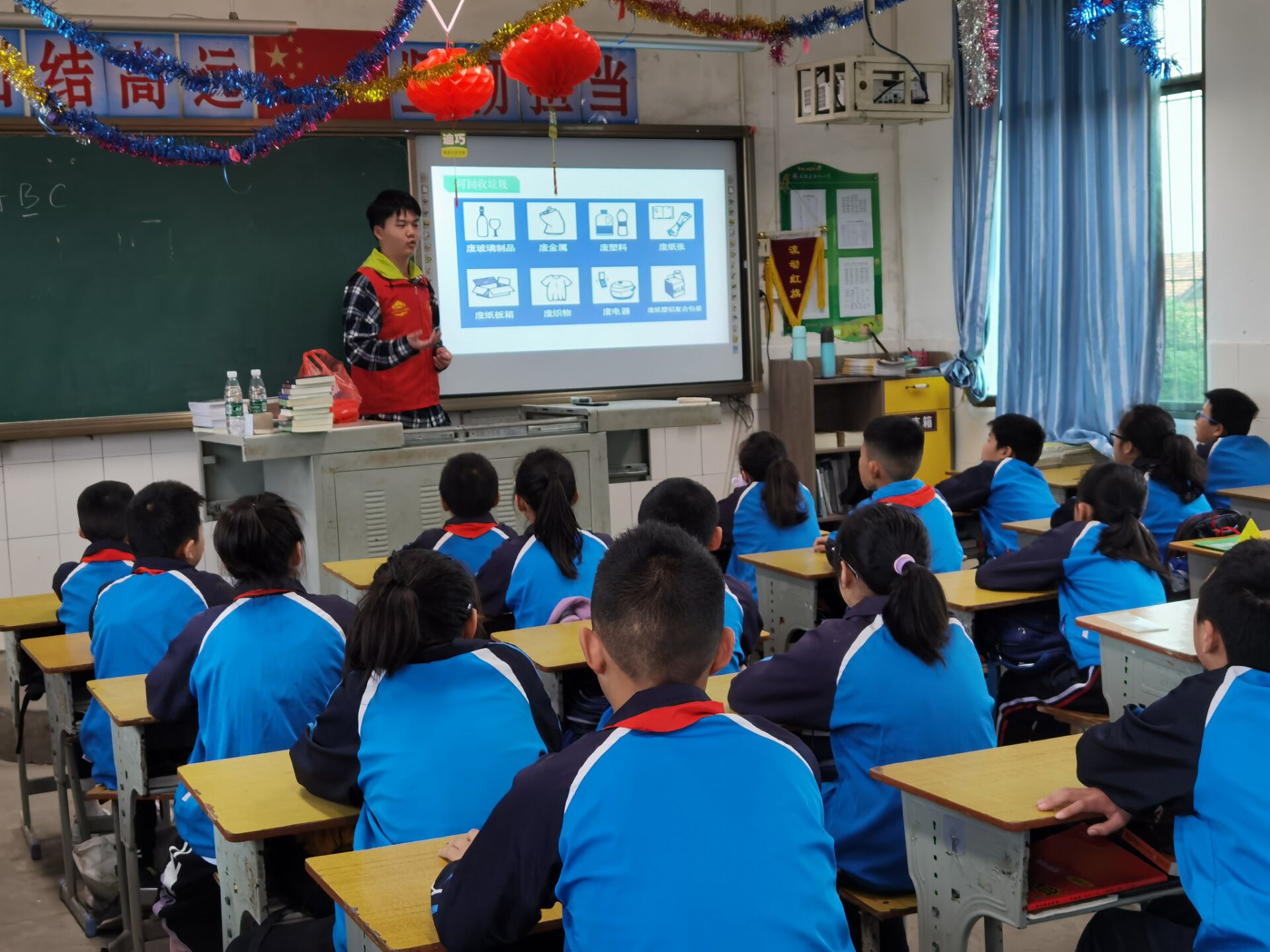 活动前夕,土木青志提前对干事们进行相关培训,同时,积极组织各班募捐书籍,用书本传递爱心,从而提高孩子们的阅读量。活动当天,负责人清点人数无误后前往活动地点,并联系合江小学老师,由老师带领前往宣讲班级。每班以一名主讲人和两名助教为一组进行宣讲,主讲人根据事先准备的PPT内容进行宣讲,助教在旁积极协助配合,确保宣讲全程始终有序进行。宣讲过程中,助教与主讲人协作进行垃圾分类小活动、有奖知识竞答、描绘美丽地球等互动,增加活动的趣味性,寓教于乐,在场的同学们均踊跃参与互动,气氛高涨;在趣味活动的同时,负责人向小员工普及垃圾分类的相关知识以及垃圾分类的重要性,并呼吁同学们要从生活中的小事做起,学会分类垃圾,为保护环境奉献自己的一份力量。