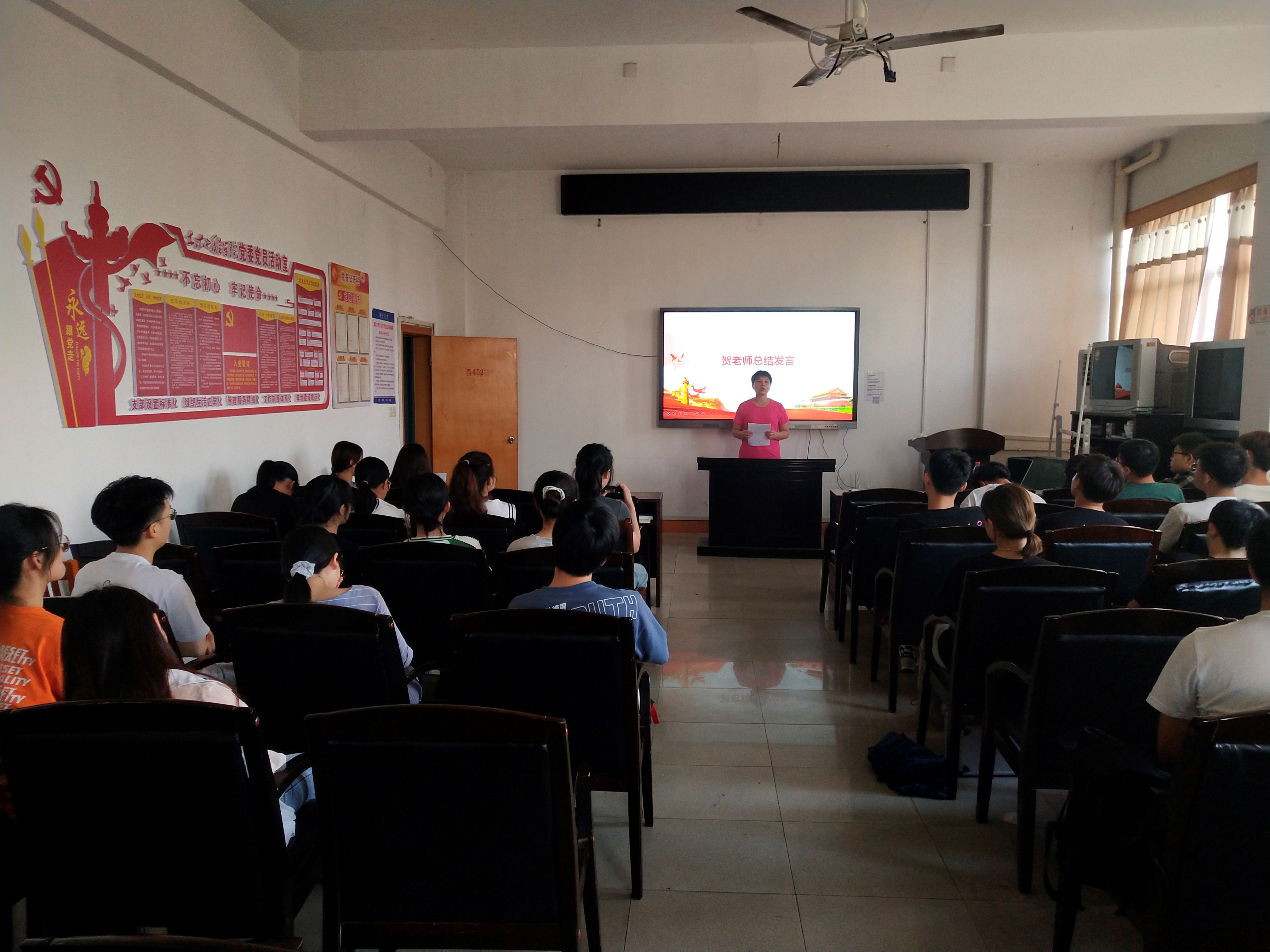 最后,贺老师总结发言:学史崇德,就是崇尚对党忠诚的政德、一切为民的公德、严于律己的私德;学史崇德,就是从红色经典中汲取力量、从英雄人物和时代的楷模身上品悟道德规范,明大德、守公德、严私德,坚定信仰,奋发有为。青春有信仰,脚下有力量。