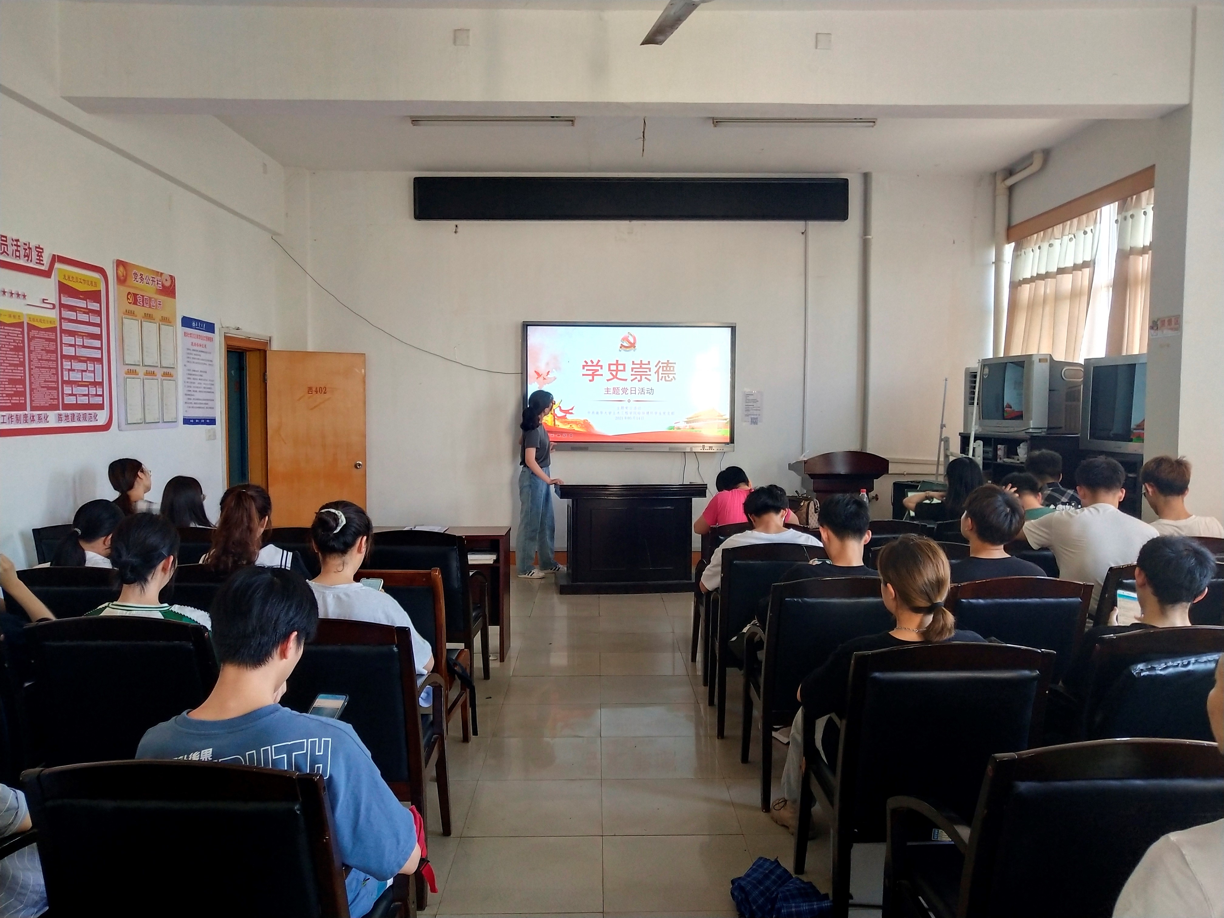 2021年5月14日下午5:00,beats365给排建环员工党支部在土木楼四楼会议室开展了“学史崇德”主题党日活动。支部书记贺淑珍老师及员工党员参加活动。