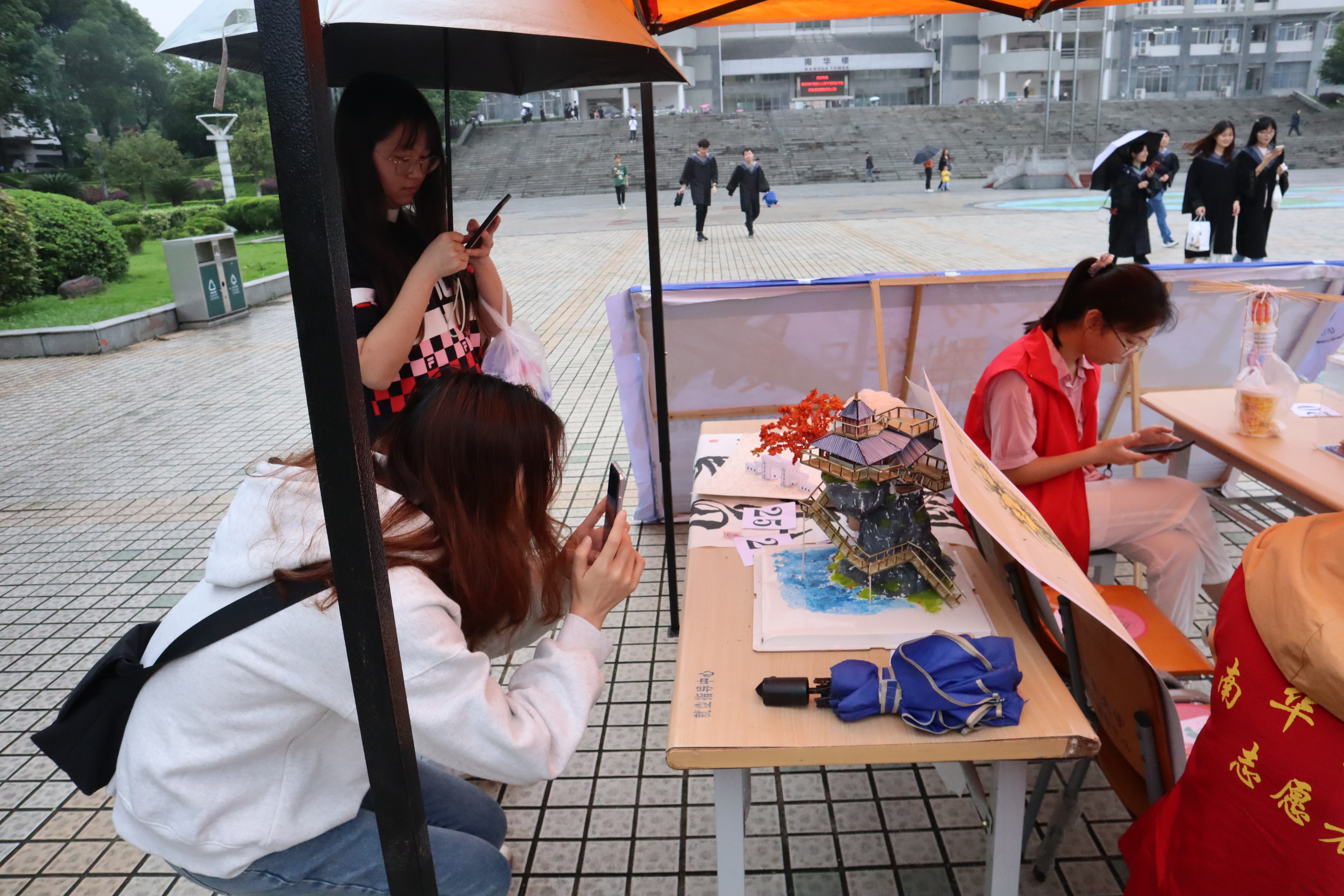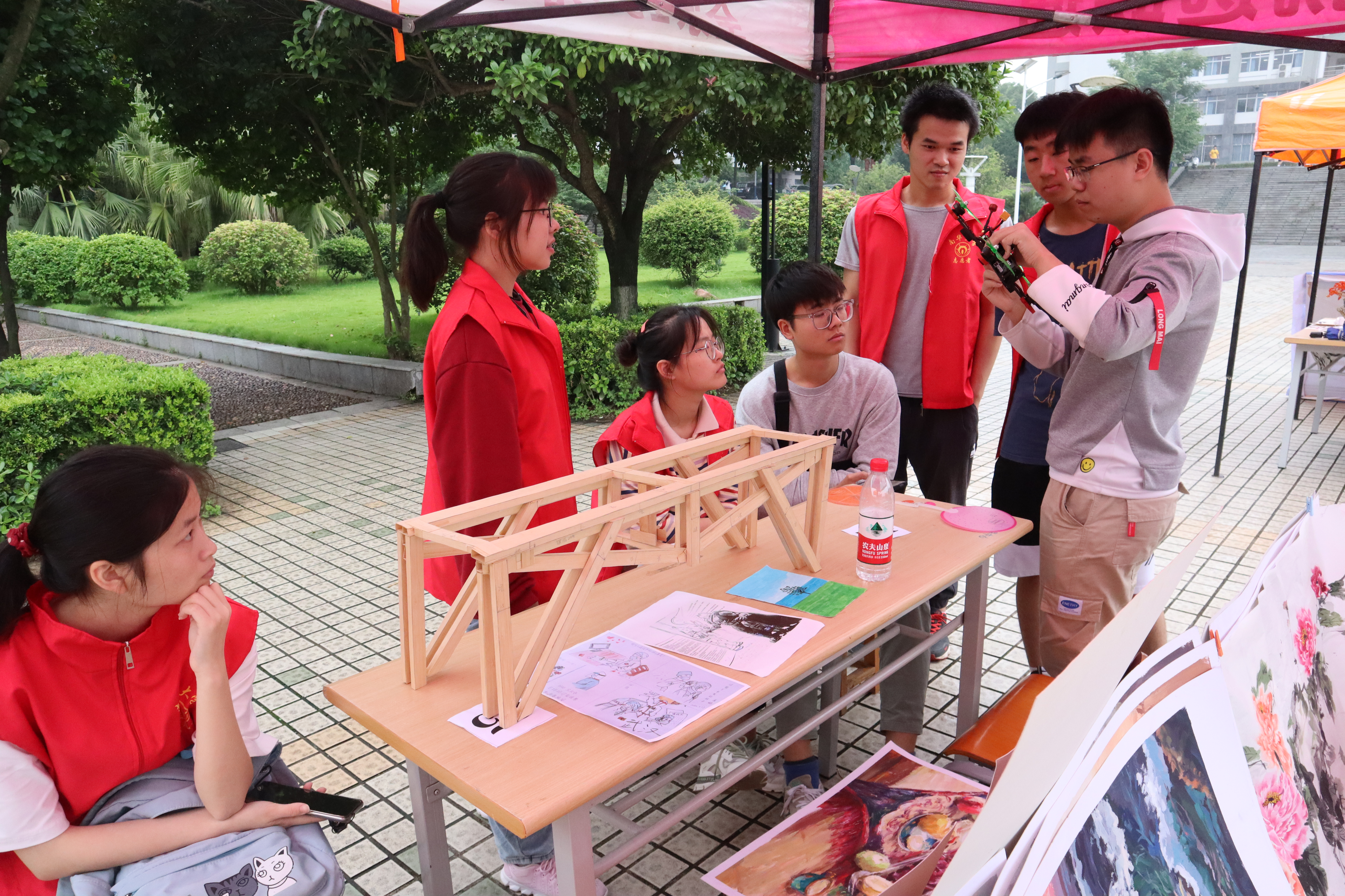 活动初,志愿者们将展品依次摆放在展台上,并为前来观看展品的同学进行相关解说。展览共计展出几十余件展品,其中有来自设计艺术公司的展品《绿萝》、《思念杨某》等画作,来自beats365的“金州大桥”、“中国红大桥”、“框架大桥”等一系列桥梁模型,来自机械公司的无碳小车和机器人模型,以及其他公司的众多优秀作品。模型具有温厚的质感,或格物致知的追求、或天马行空的想象,让参观者大饱眼福,同学们一边仔细欣赏着作品,一边认真倾听志愿者对作品的诠释,大家在对每个模型充满好奇之余,更是对创作者扎实的专业知识以及丰富的想象力和创造力感到无比惊叹。随着时间临近结束,天空下起小雨,参观的同学们逐渐离场,至此,活动圆满结束。