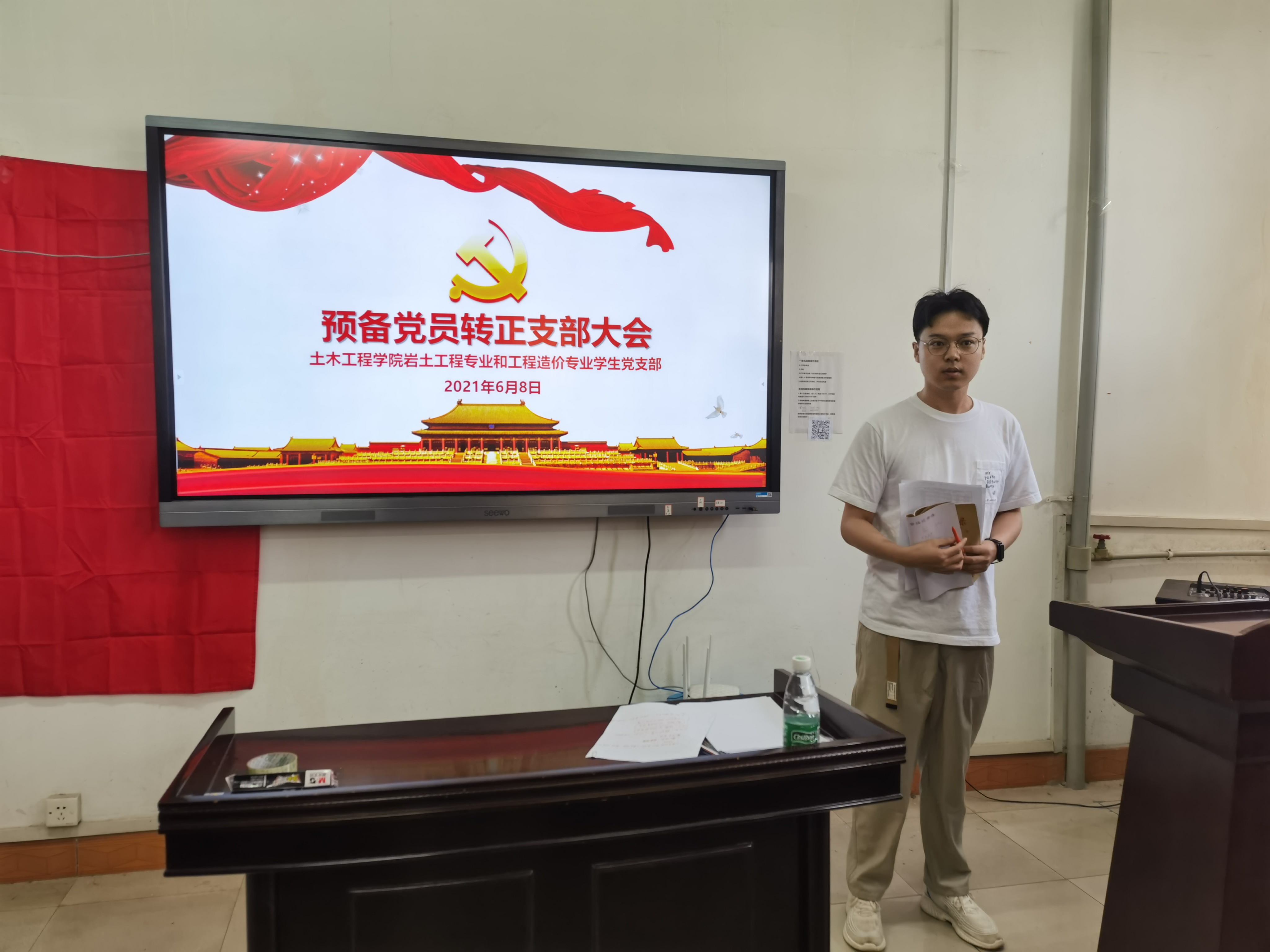 2021年6月8日9:00,beats365岩土工程专业和工程造价专业员工党支部在土木楼四楼会议室召开预备党员转正大会暨支部委员补选大会,会议由支部副书记屈海朋主持,支部全体党员参加了会议。大会讨论了关于卢尚文等9名同志是否按期转正及补选支部委员的问题。