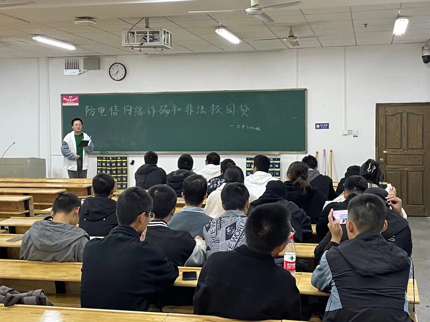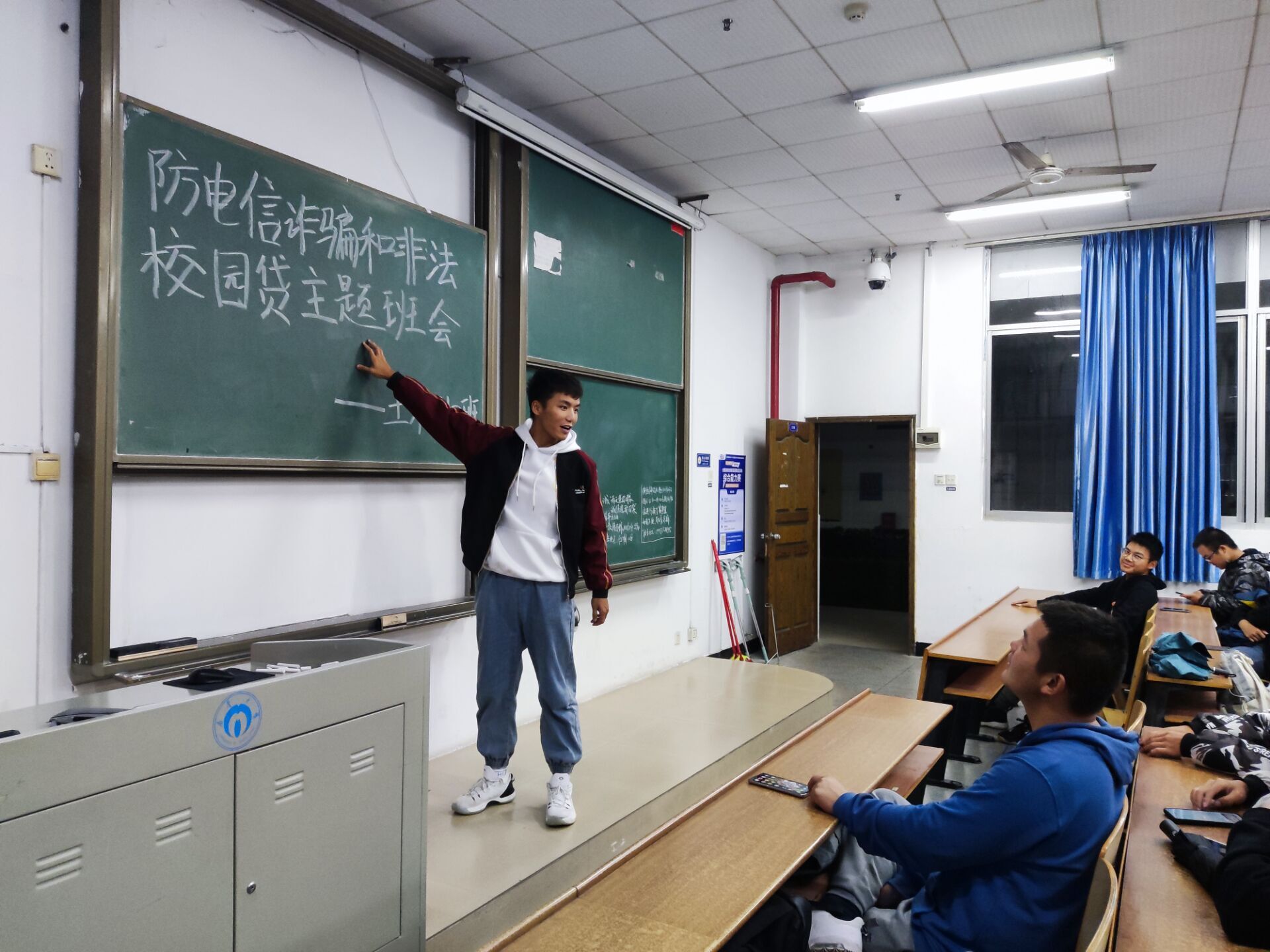 首先,各班班长指出本次班会主题,明确本次班会内容。接着,各班班委向本班同学详细讲解了网络诈骗及非法校园贷的类型和危害,并以观看电信网络诈骗相关视频、表演舞台剧、表演小品等形式来将“预防网络诈骗、拒绝校园贷”这一主题深入同学们的心中。随后,同学们就如何预防网络诈骗、拒绝校园贷展开积极讨论,现场氛围热烈。班会最后,各班班长作总结讲话,并再次强调提高网络安全防范意识的重要性。至此,本次主题班会圆满结束。