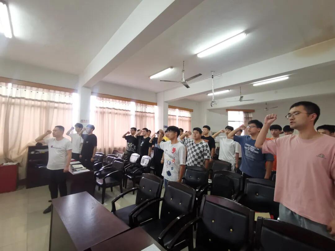 会议第四项,重温入党誓词。在支部书记彭兴明老师的领誓下,与会党员庄严地举起右手,面向党旗,共同重温入党誓词。高昂嘹亮的宣誓声凝聚起不忘初心的信念与力量。