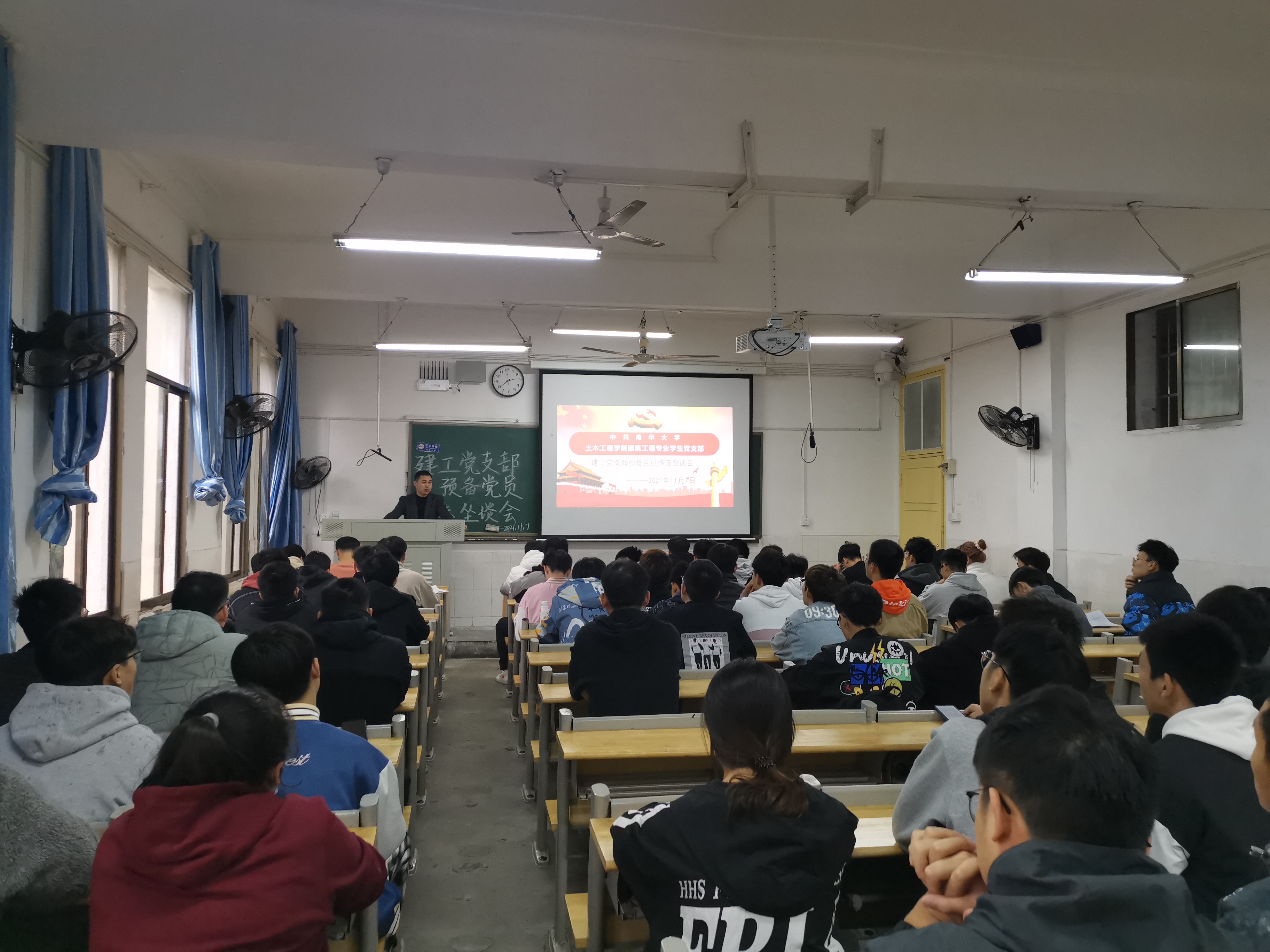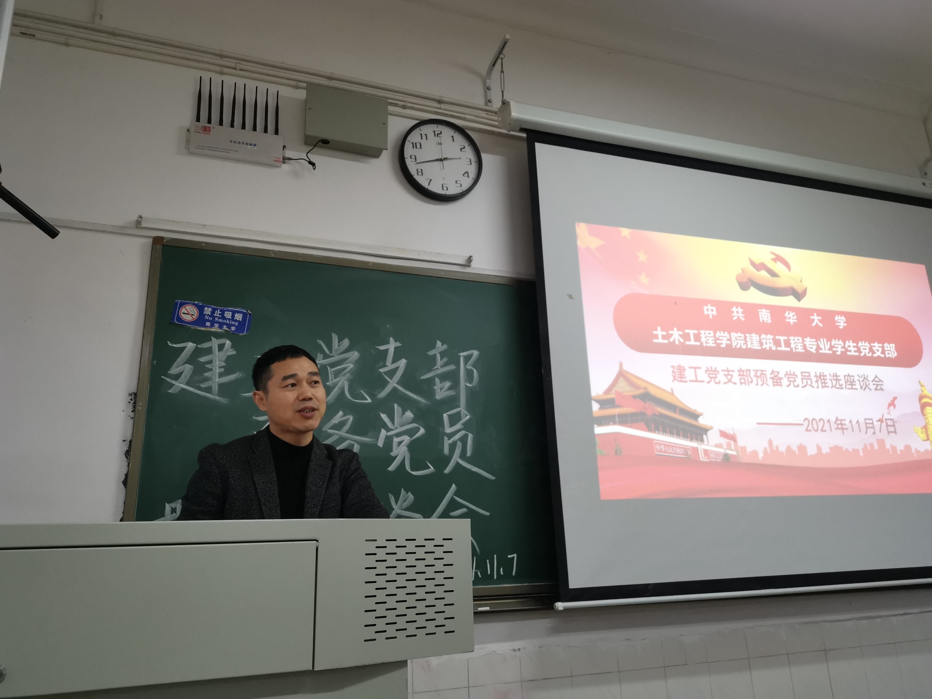 2021年11月7日下午2:30,为吸收优秀同志进入党组织,增强党的影响力和凝聚力,建筑工程专业员工党支部于核学楼303召开发展对象推优会议。员工党支部书记彭兴明老师、支部全体员工党员、发展对象以及各班群众代表参加会议。