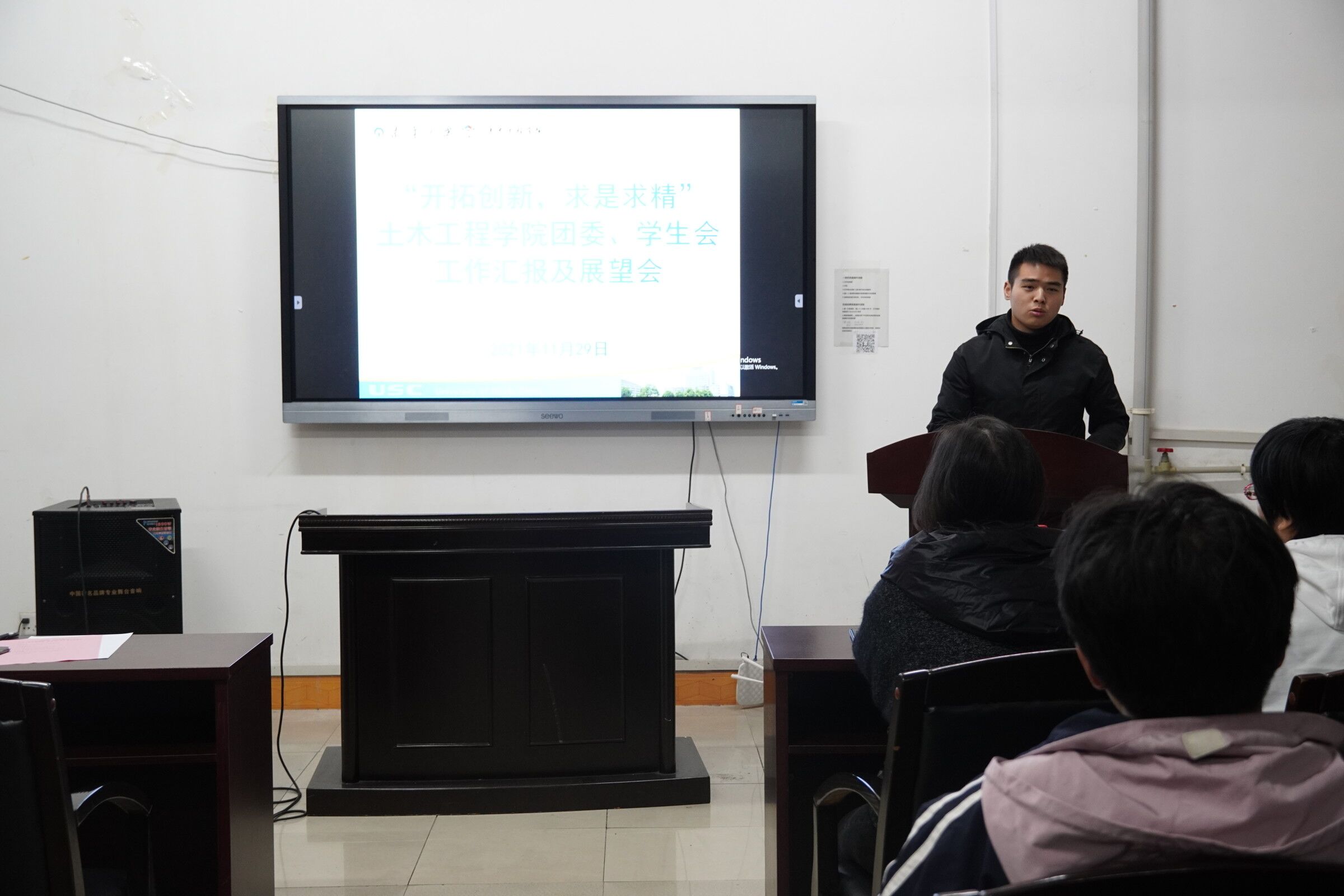2021年11月29日晚7点,beats365团委、员工会工作汇报及展望会在土木楼421会议室举行。公司党委副书记唐素芝、学工室辅导员贺淑珍、团委书记易明明、第十六届团委及员工会全体团干出席此次会议。会议由员工会执行主席张钞同学主持。