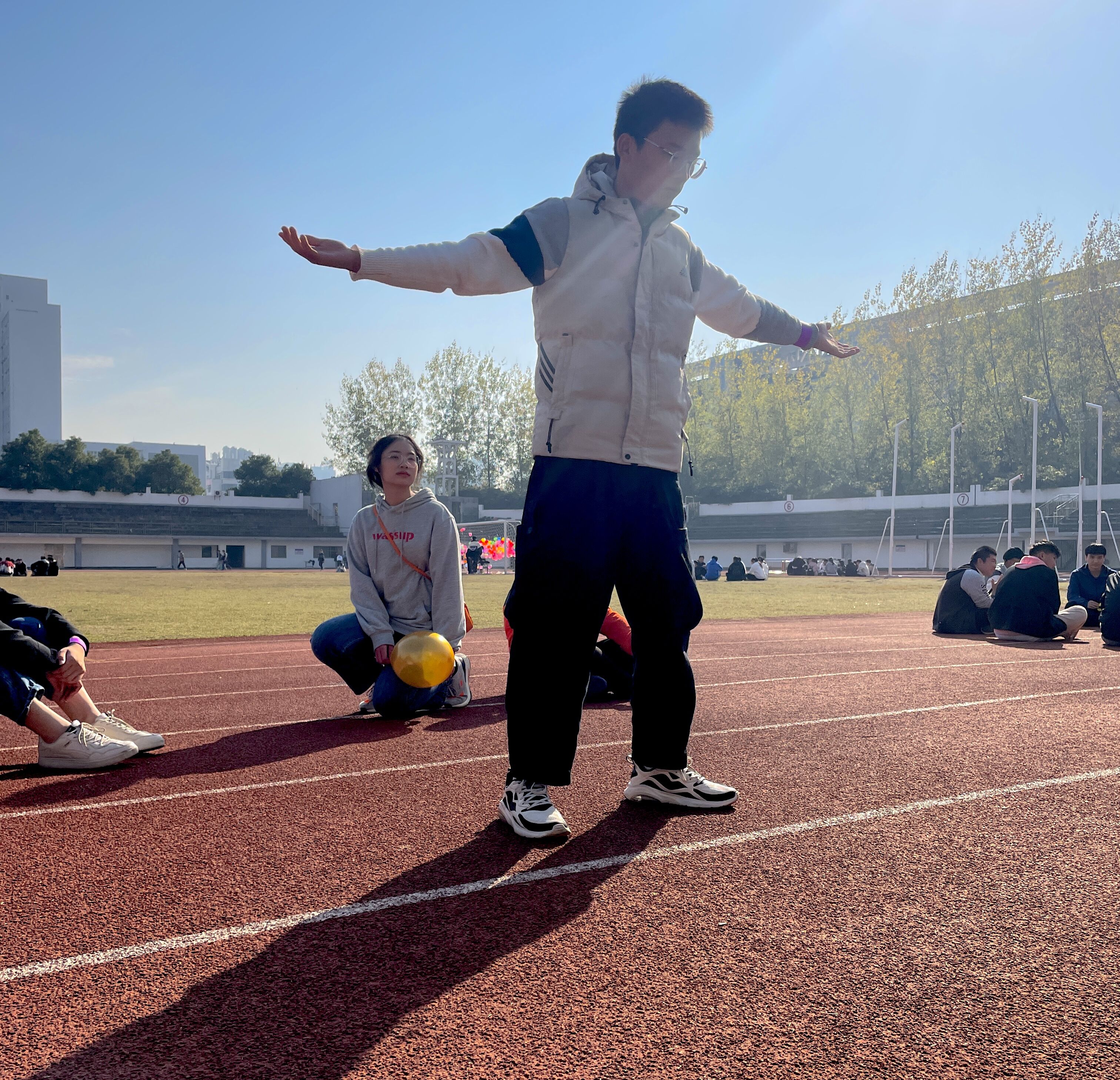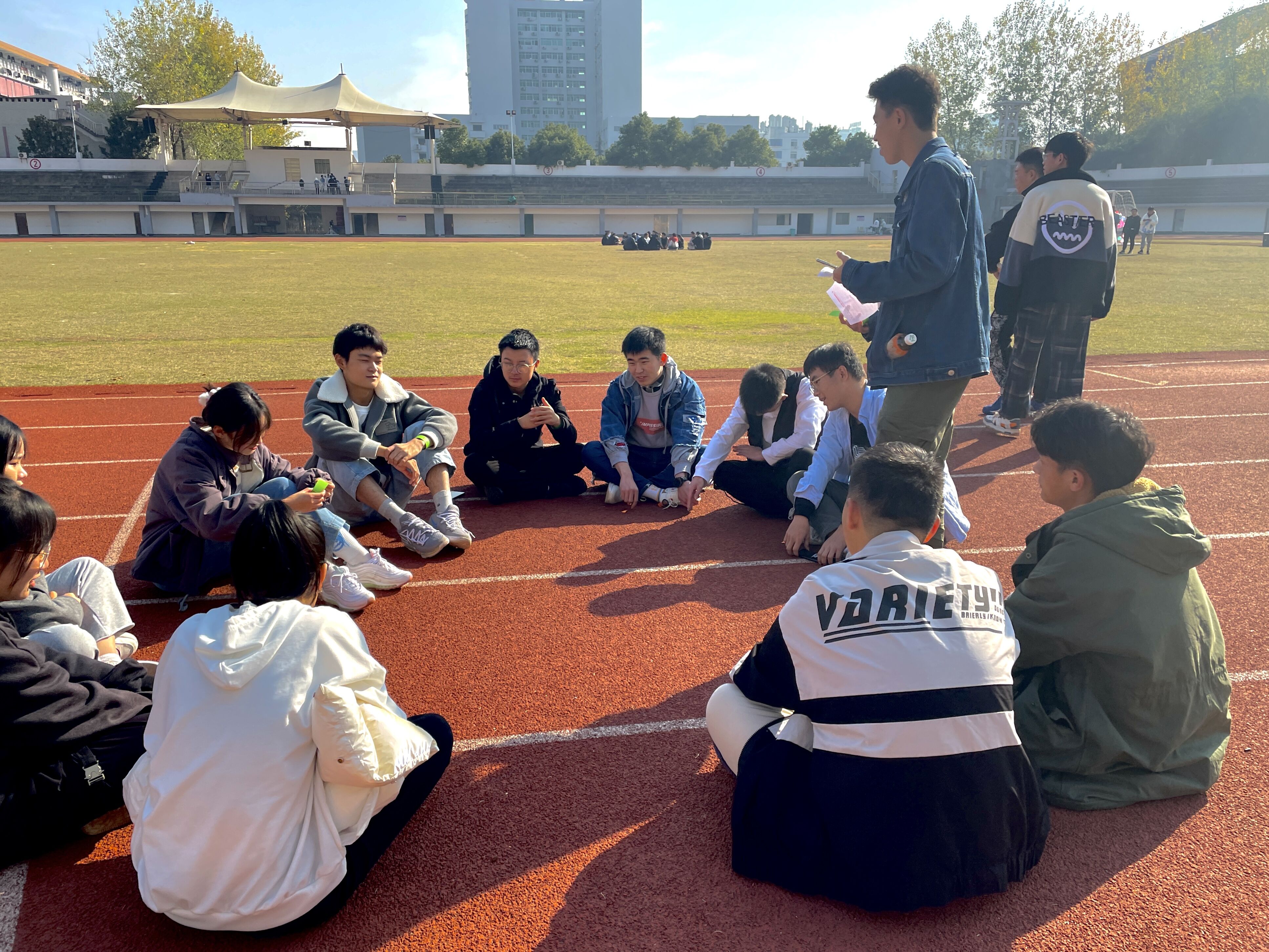 活动伊始,工作人员将全体同学分为十个小组,各小组成员通过小游戏“交换名字”互相认识。紧接着就是小组对抗环节,由“你演我猜”“摆龙尾”“踩气球”等部分组成。活动过程中,每位同学积极参与,田径场上笑声不断。活动最后,工作人员公布各小组累计得分成绩,并为排名第一的小组送上本次活动奖励。最后,本次破冰之旅在全体成员合影留念后圆满结束。