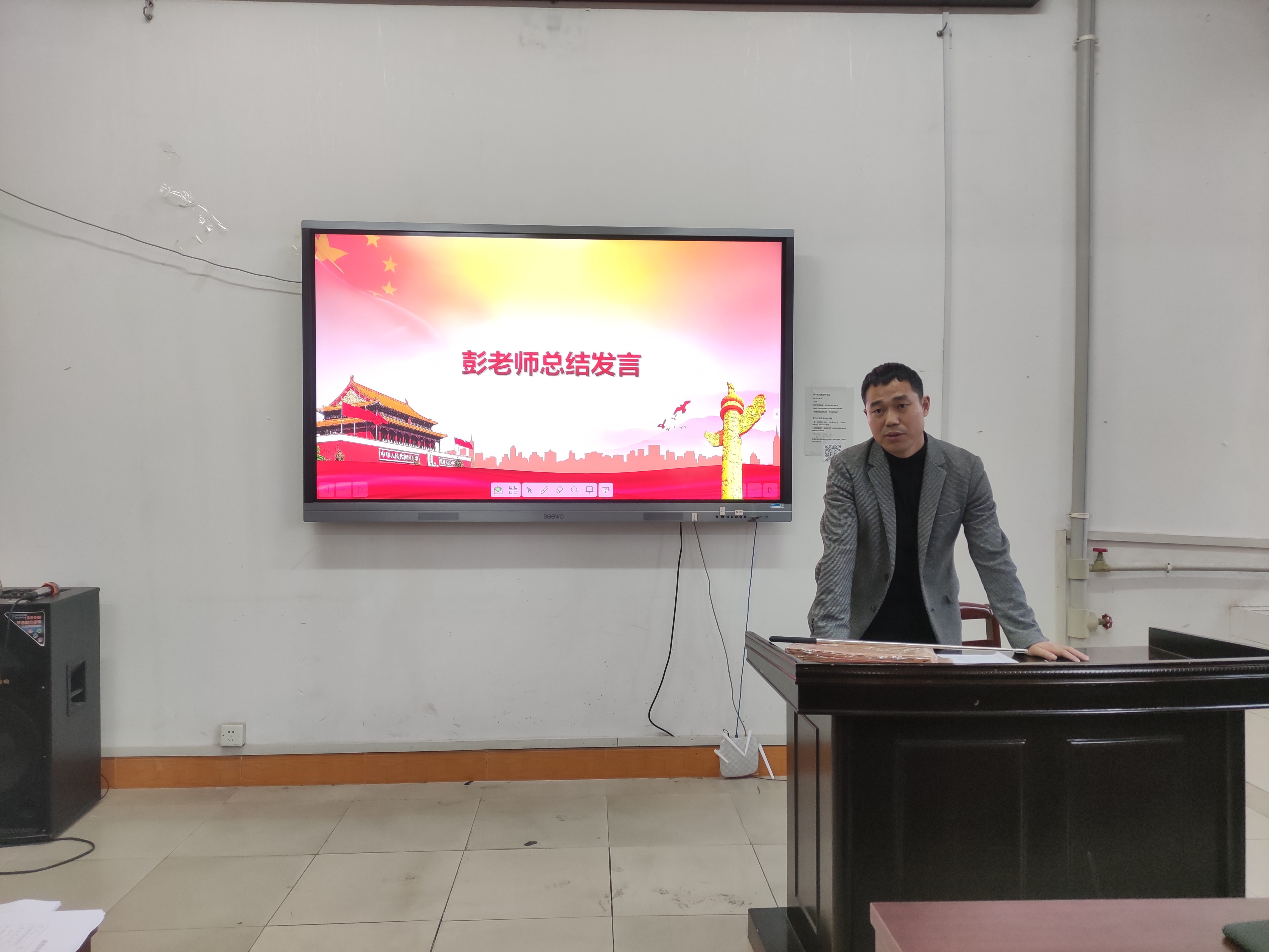 会议最后,支部书记彭兴明老师对会议进行总结。彭兴明老师说道:作为一名员工党员,应该处理好员工事务和支部工作,在工作和学习中不断的提升自我。并要求新一批党员要做好模范带头的作用。