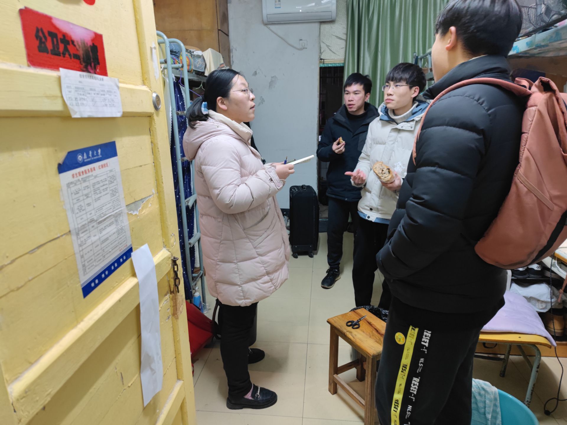 为确保春季开学工作有序进行,保障员工宿舍的安全稳定,2022年2月21日晚,beats365官方网站公司党委副书记唐素芝老师、学工室各辅导员老师及院团委书记吴旦老师带领部分员工干部开展全院宿舍安全大检查。