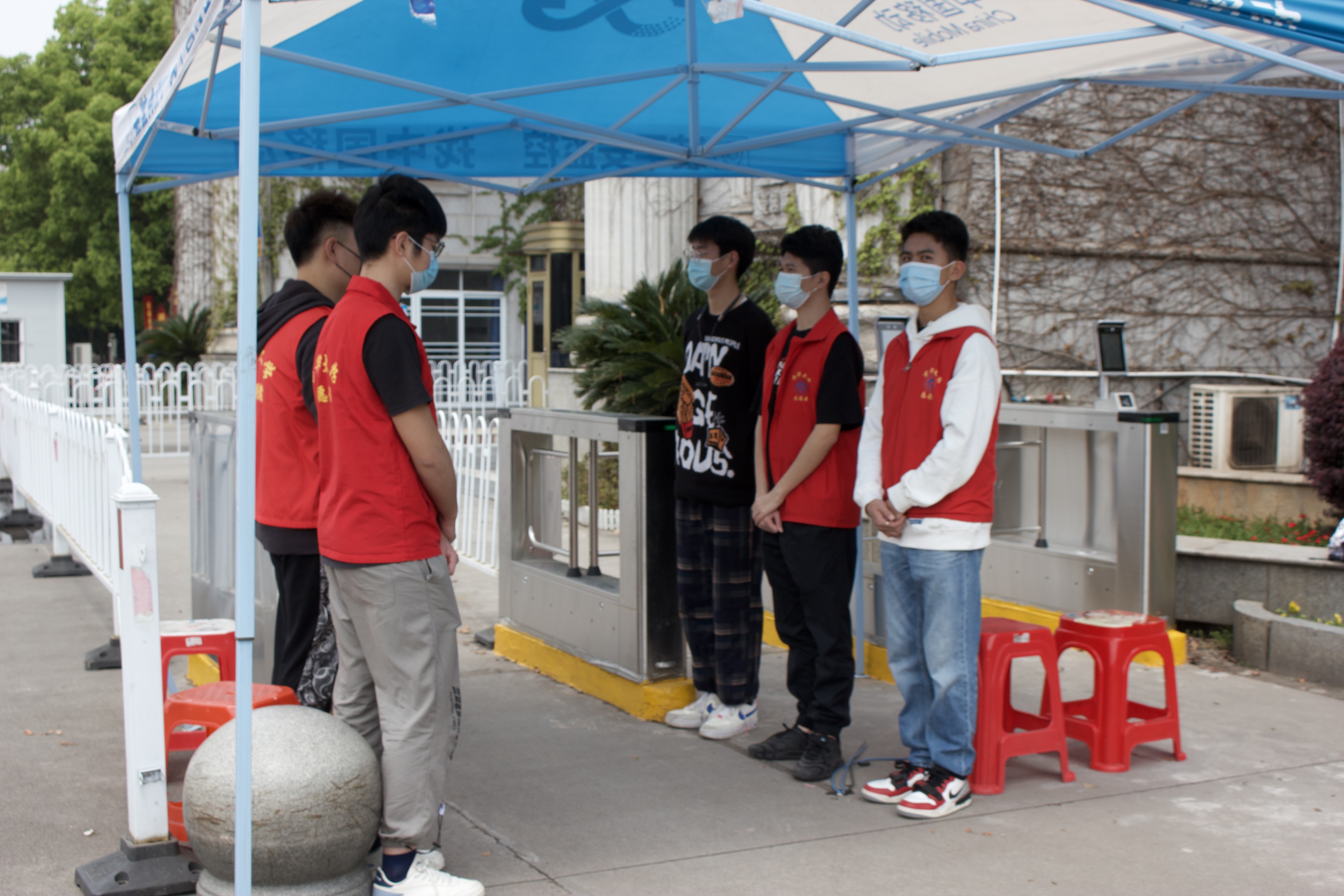 本次志愿活动中,员工志愿者们按小组分别在南华楼、校门口、宿舍楼围墙旁等主要通道分时段轮流值班,对进出校园人员进行仔细核查;提醒引导上课师生进入教室正确佩戴口罩、保持安全距离;对翻越围墙出校以及点外卖同学进行制止与劝导。此外,院青年志愿者工作部的成员还对南华楼各教室、楼梯扶手进行消毒工作。活动全程,辅导员老师和志愿者们按时到岗、认真工作、严格把关,切实执行公司疫情防控的工作要求,落实疫情期间校园封闭管理制度。