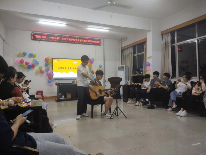 首先由支部书记刘华老师作开场讲话,希望各位同志珍惜离校前相聚的时光,并预祝本次欢送会顺利开展。欢送会的开始,由20级和19级员工党员依次为毕业生们献上合唱表演,歌声深入人心,情感真挚;其次段益江同志为大家进行了一出纸牌魔术表演,神奇的魔术一环套着一环,令大家瞠目结舌,拍手叫好;随后,曾启星同志为大家带来了一首吉他弹唱,不禁引得全场合唱,歌声随着跳动的音符飞升起来流泄在屋内各角落。