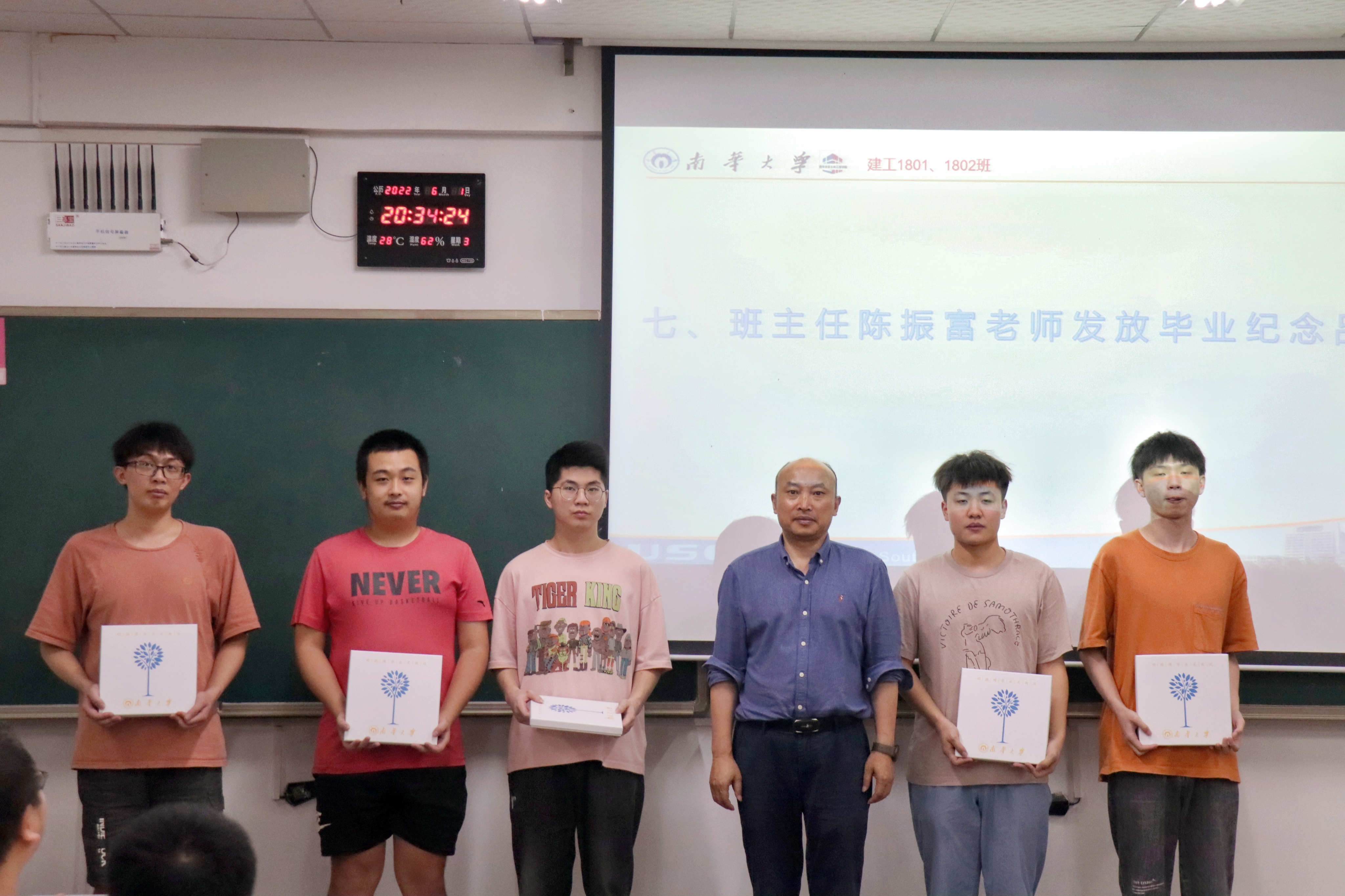 班会第三环节,班主任陈振富老师发放毕业纪念品并总结讲话。他着重强调安全问题,希望同学们时刻注意自身安全,牢记安全第一。并希望同学们提前做好步入社会的准备,尽快适应新的角色,要做到心中有梦想、脚下有力量、未来有方向。最后他祝愿同学们学有所成,前程似锦。