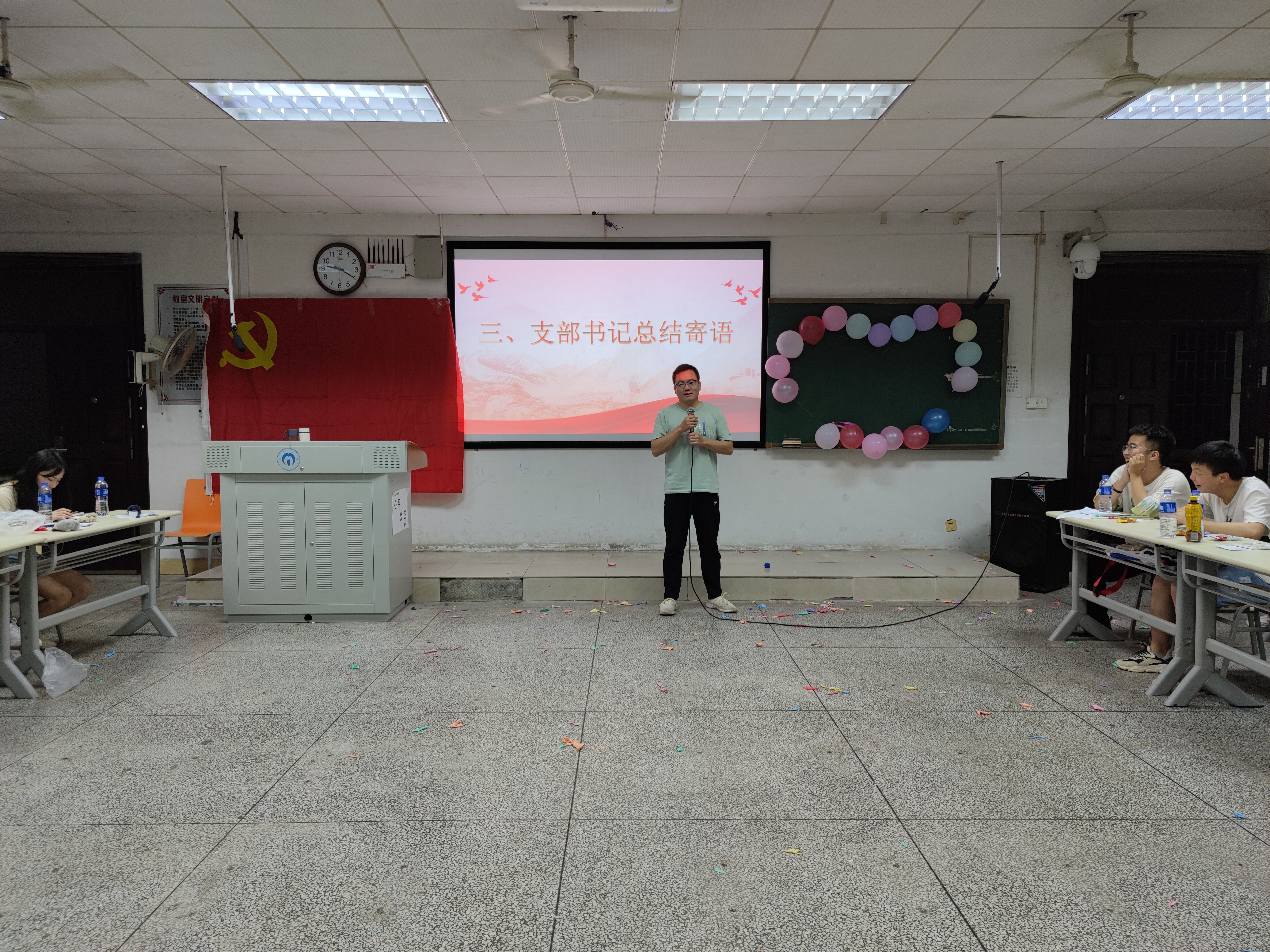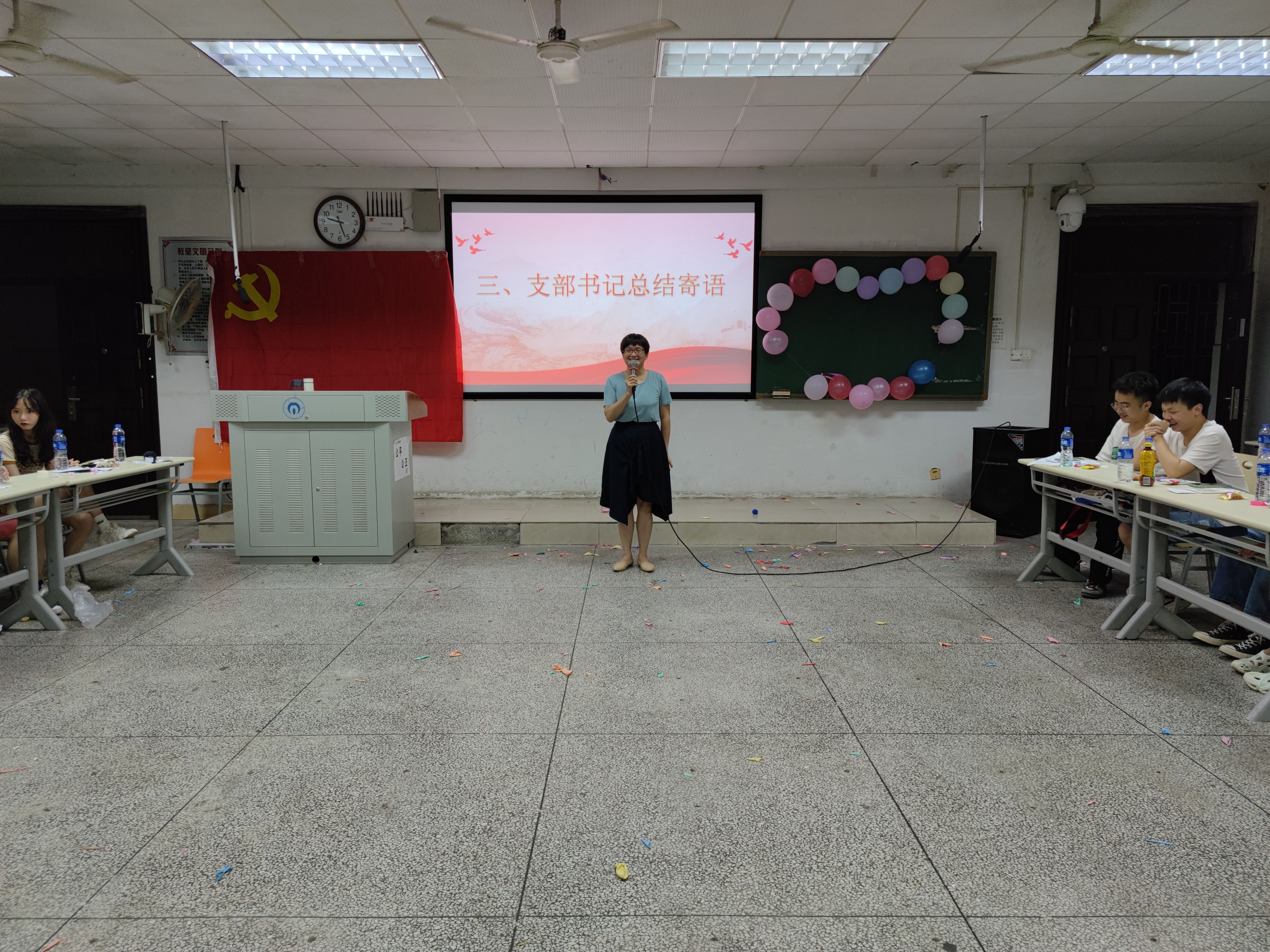 员工第二党支部书记吴旦老师对全体党员提出三点希望,希望全体党员能够细心工作、诚心待人、用心生活,在未来创造出更好的成绩。聚是一团火,散是满天星,党员的使命和责任永远只有进行时,员工第二党支部书记李翠新老师对支部全体毕业生党员表达了不舍和期望,希望大家不忘初心,保持热爱,脚踏实地,一步一个脚印走出自己的精彩人生。