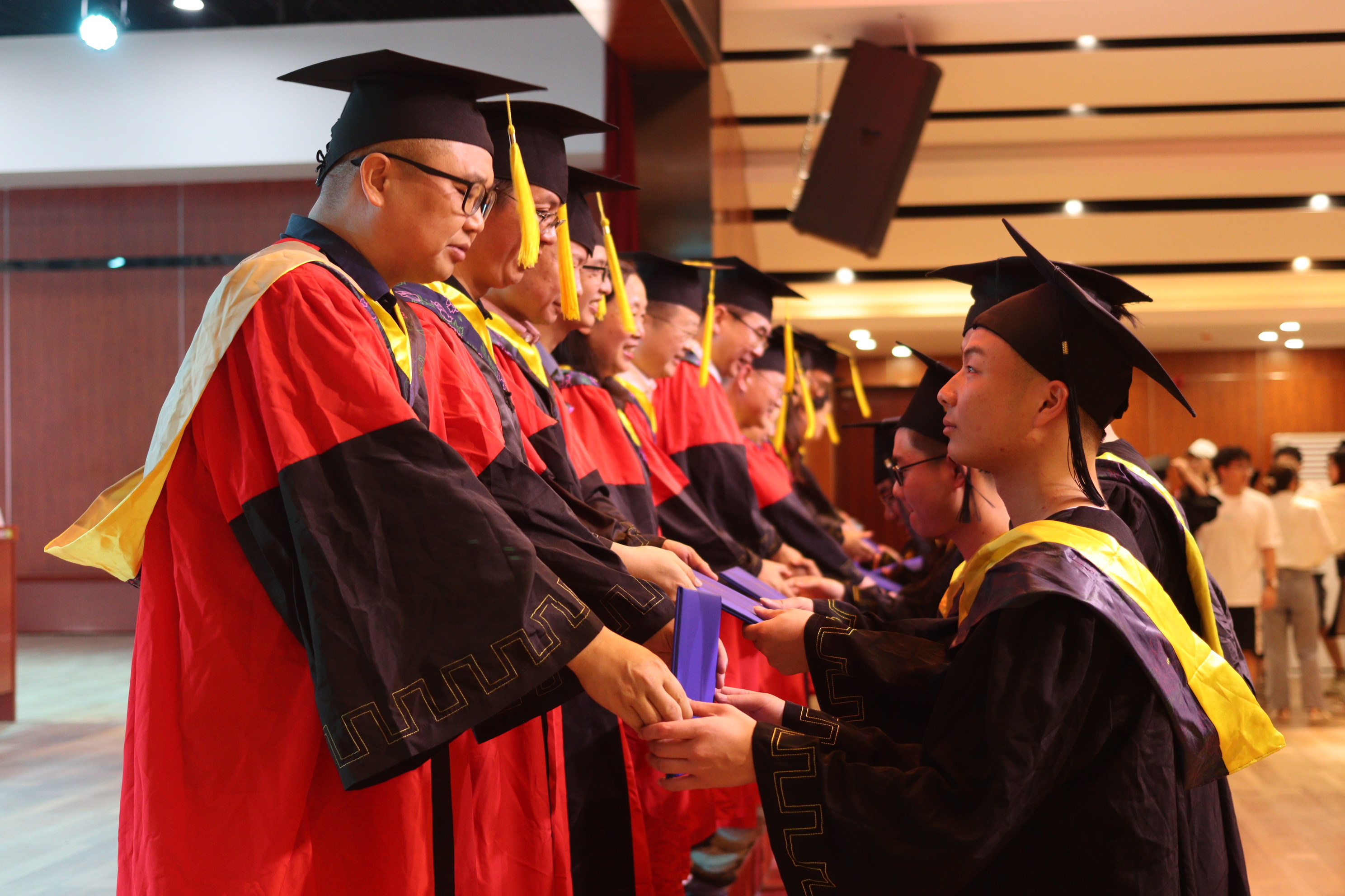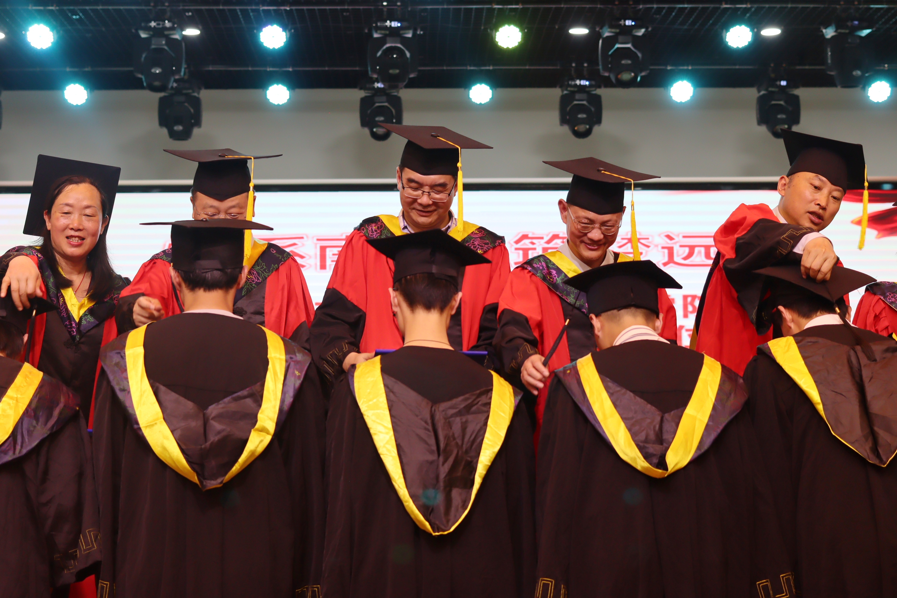 学位授予仪式正式开始。领导与教师代表依次为毕业生们拨流苏、授予学位证书,并合影留念。典礼最后,全体起立,奏唱校歌。至此,beats365毕业典礼暨学位授予仪式圆满落幕。
