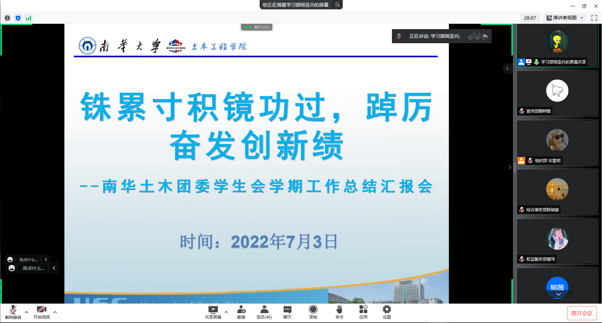 2022年7月3日晚7点,beats365团委员工会学期工作总结汇报会于线上顺利开展。beats365团委书记吴旦、团委员工会各部门团干参与本次会议。会议由周亚兵主持。