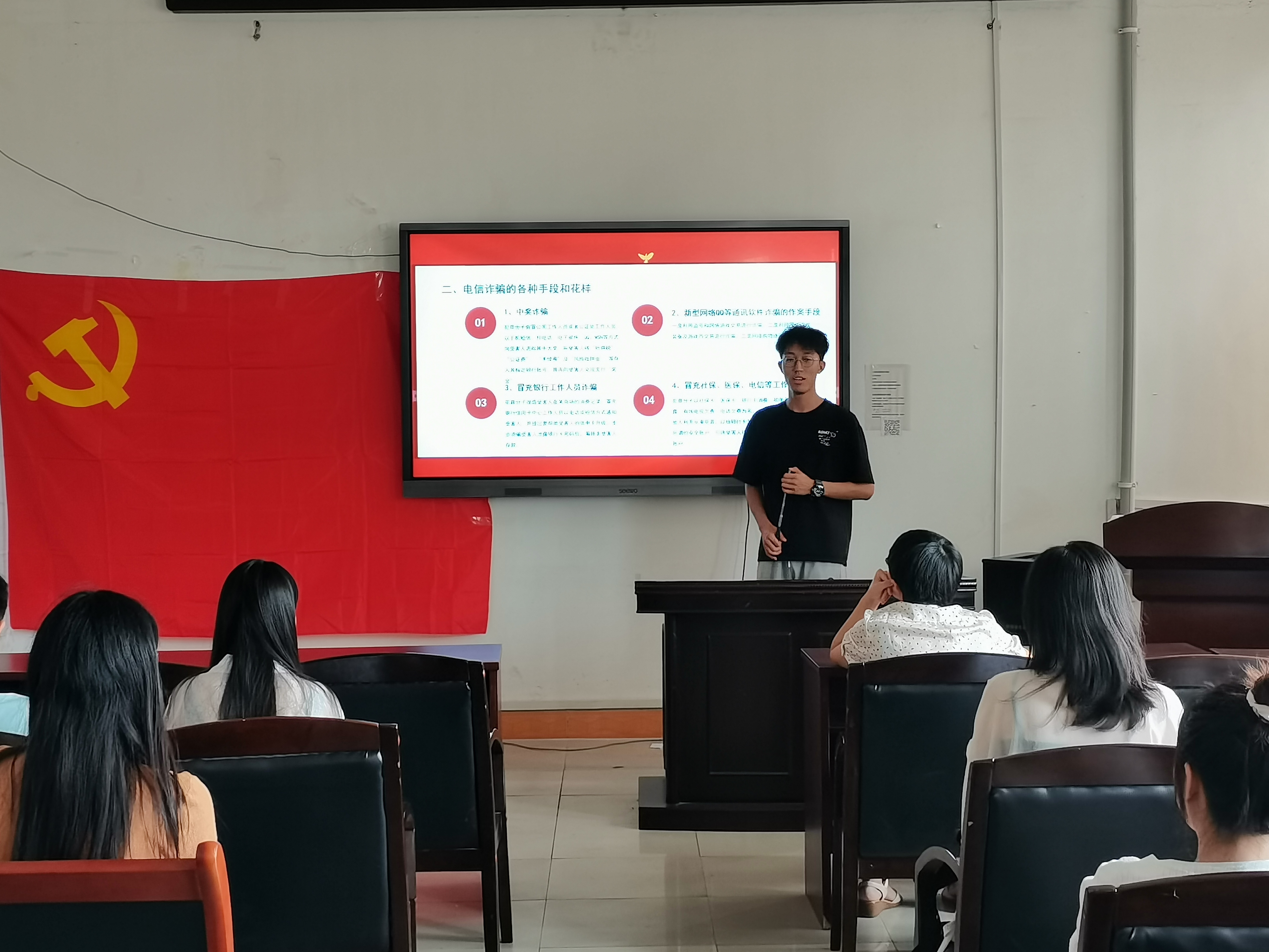 会议第二项,开展“党员先行、全民反诈”活动。由苏未同学带领支部党员学习《中华人民共和国反电信网络诈骗法》,了解掌握“什么是电信诈骗”、“诈骗的手段和花样”、“如何防止网络诈骗”等相关知识。全体党员下载安装“国家反诈中心APP”、签订《不参与电信网络诈骗犯罪承诺书》。