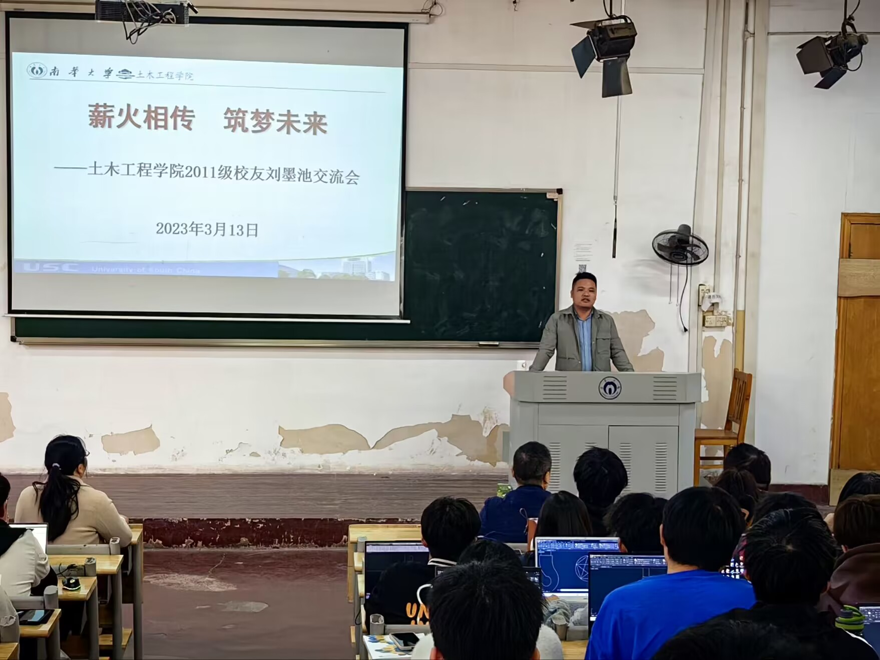 2023年3月13日下午14时30分,时任中交隧道工程局有限公司青岛胶州湾第二海底隧道项目党支部书记兼工会主席、副经理的公司2011级优秀员工刘墨池应邀参加“薪火相传筑梦未来”的交流会。beats365路桥系副教授李明老师、辅导员刘华老师、路桥专业20级近百名同学参加会议。