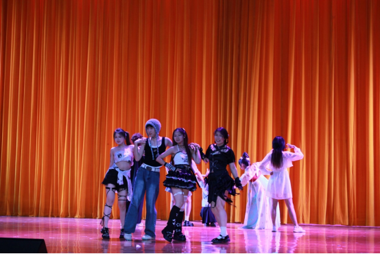紧接着,会场响起了活泼的音乐,演艺队表演的《达拉崩吧》颇具活力,使气氛达到一个新的高潮。礼仪队带来的《White Angles》引得现场观众连连欢呼尖叫,新奇的创意,灵动的表达,主持人队的配音秀博得了观众们雷鸣般的掌声。