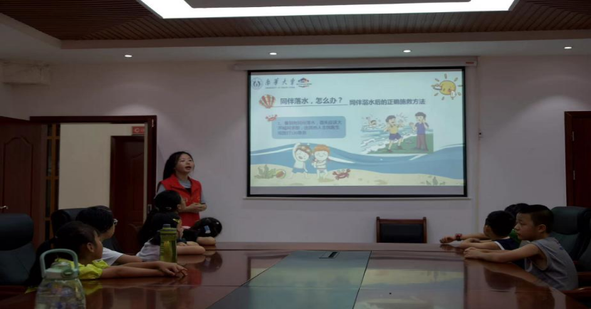 (志愿者为小朋友讲述防溺水知识)