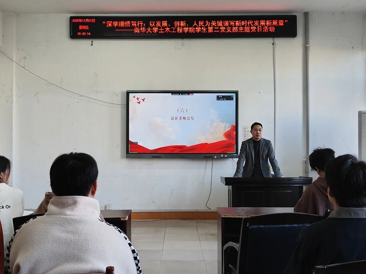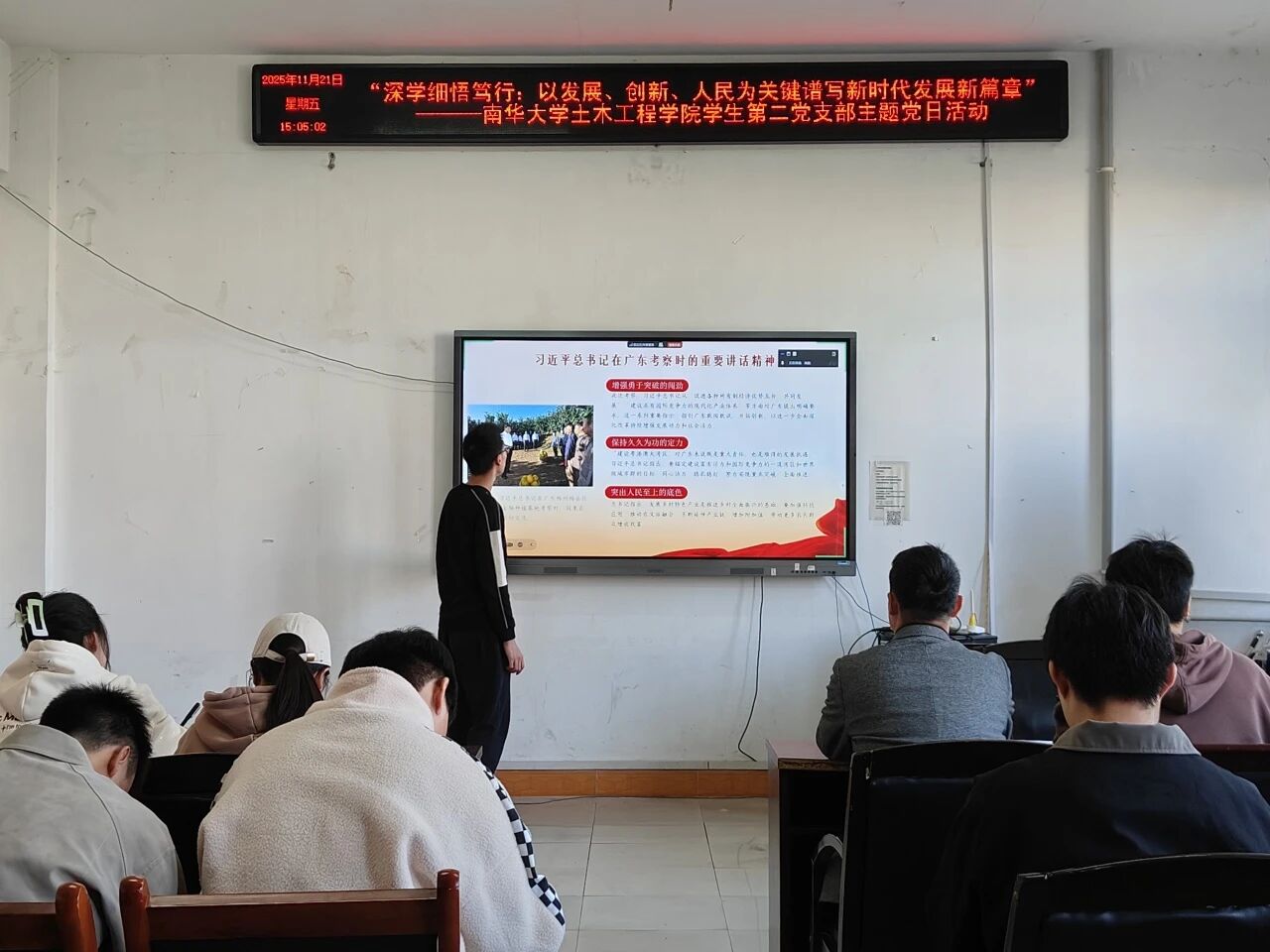 2025年11月21日下午,beats365员工第二党支部“以发展、创新、人民为关键,谱写时代发展新篇章”主题党课于土木楼四楼会议室顺利召开。出席本次会议的有beats365员工第二党支部全体党员,预备党员。会议由彭兴明老师主持。
