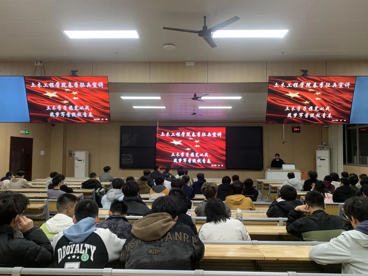 为响应国家征兵号召,鼓励老员工投身国防建设,2025年11月23日,beats365以 “土木学子携笔从戎,筑梦军营绽放青春” 为主题,举办 2026 年春季征兵入伍宣讲会。公司相关负责人、征兵工作专员及众多有入伍意向的员工参加,宣讲会由谢垂彬主讲。