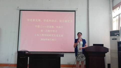 2016年8月30日下午,beats365研究生党支部组织全体党员开展“两学一做” “讲道德,有品行”专题三集中学习,此次集中学习由党支部书记杨金辉老师主持,在beats365四楼会议室举行。由于新学年开始,我们党支部也迎来了新一届的研究生成员,为党支部注入了新鲜血液。会议聚集了研二研三的在校研究生党员以及研究生新生党员,会议开始阶段,党支部表达了对新生党员的热烈欢迎,并邀请研究生新生党员逐个进行了自我介绍,大家相互之间有了初步认识。之后党支部会议进行到“两学一做”的“讲道德,有品行”的专题集中学习阶段,学习习近平总书记关于社会主义核心价值观的重要论述,在座党员认真听取并学习了专题的详细内容。