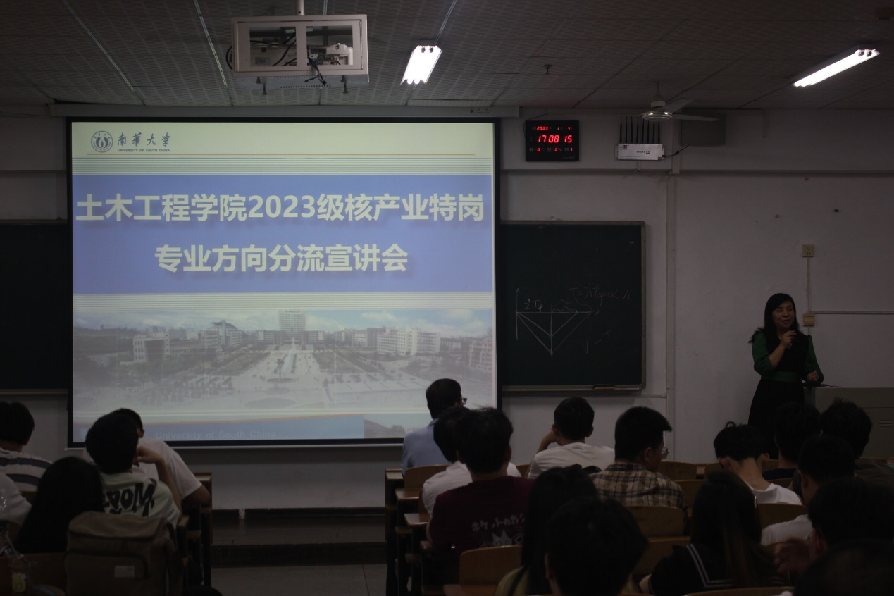 孙冰老师从指导思想、组织机构和实施细则等方面为同学们详细讲解了23级核产业特岗专业方向分配实施方案。该方案遵循成绩优先和公平公正的原则对土木工程核特岗的168名同学进行专业分流。同学们应根据自身兴趣爱好与学习基础选择合适的专业。