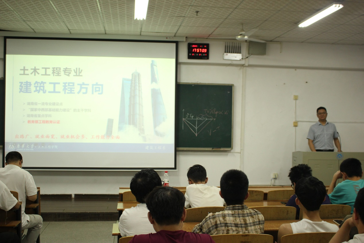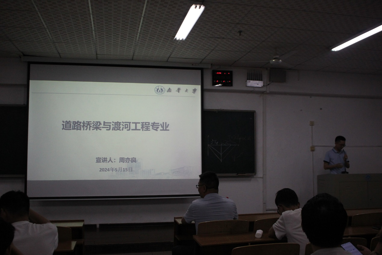 接着,各系室主任分别对各自专业的专业特点、培养方案、升学就业概况等做了详细讲解和说明。李仕友老师分别从历史沿革、团队队伍、学位点成果、实验条件、人才培养等五方面,对给排水科学与工程专业进行了详细的介绍;聂春龙老师从基本概念,工作内容,造价特色三个方面说明工程造价专业方向旨在培养专业技术人才;周亦良老师结合道路桥梁与渡河工程专业方向的专业属性、行业现状、学习内容,指出该专业方向具有广阔的就业前景;方耀楚老师结合建筑工程专业的特色说明该专业方向具有出路广、就业宽,就业机会多以及研究领域广泛的优势。